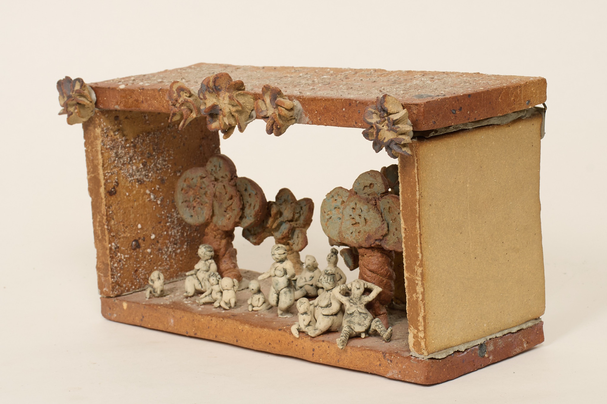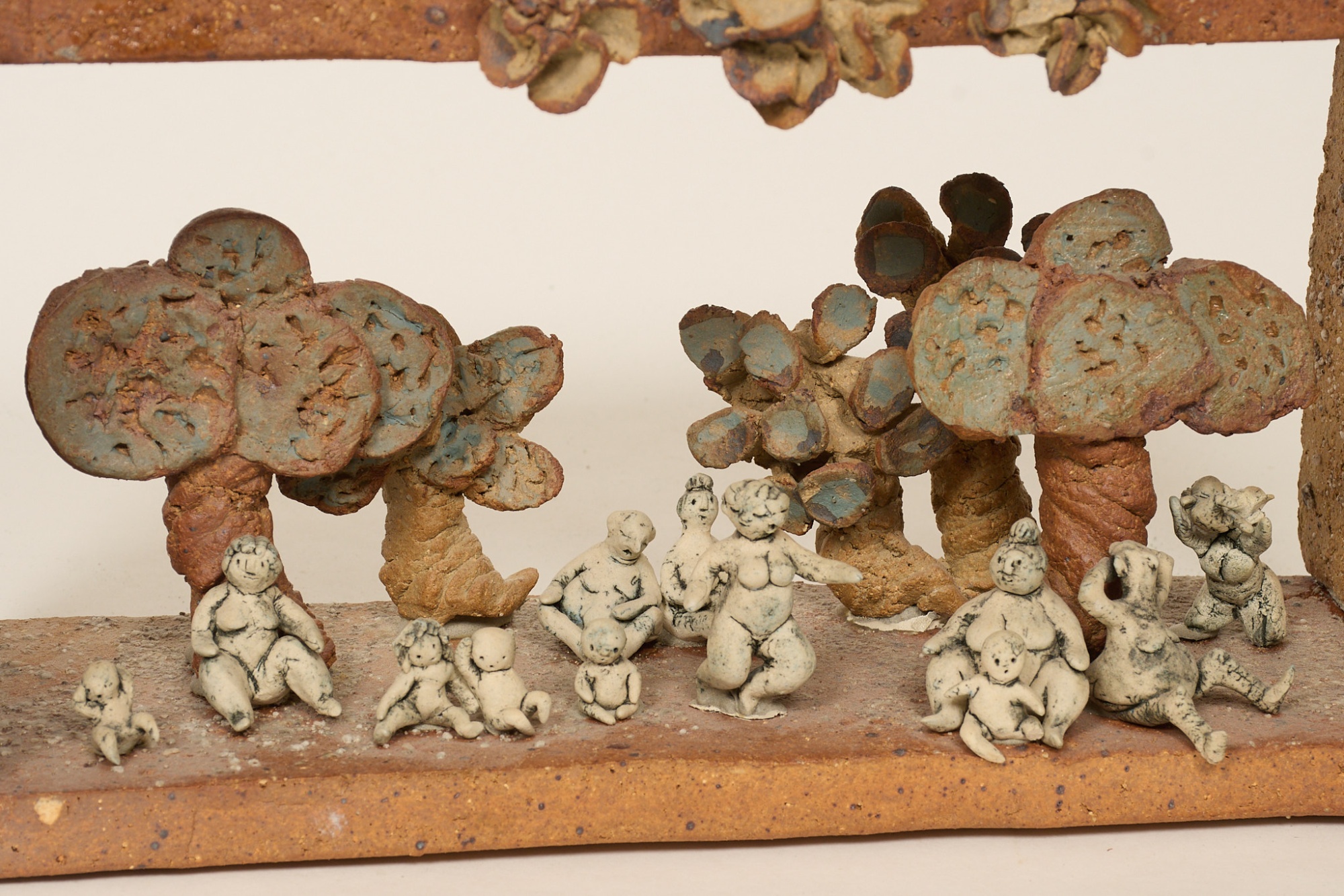 Stengods, osignerad, för montering på vägg, 30,5 x 12 cm, höjd 15,5 cm, möjligen avslag på blomsterdekoration, annars gott skick. OBS! Skickas ej!