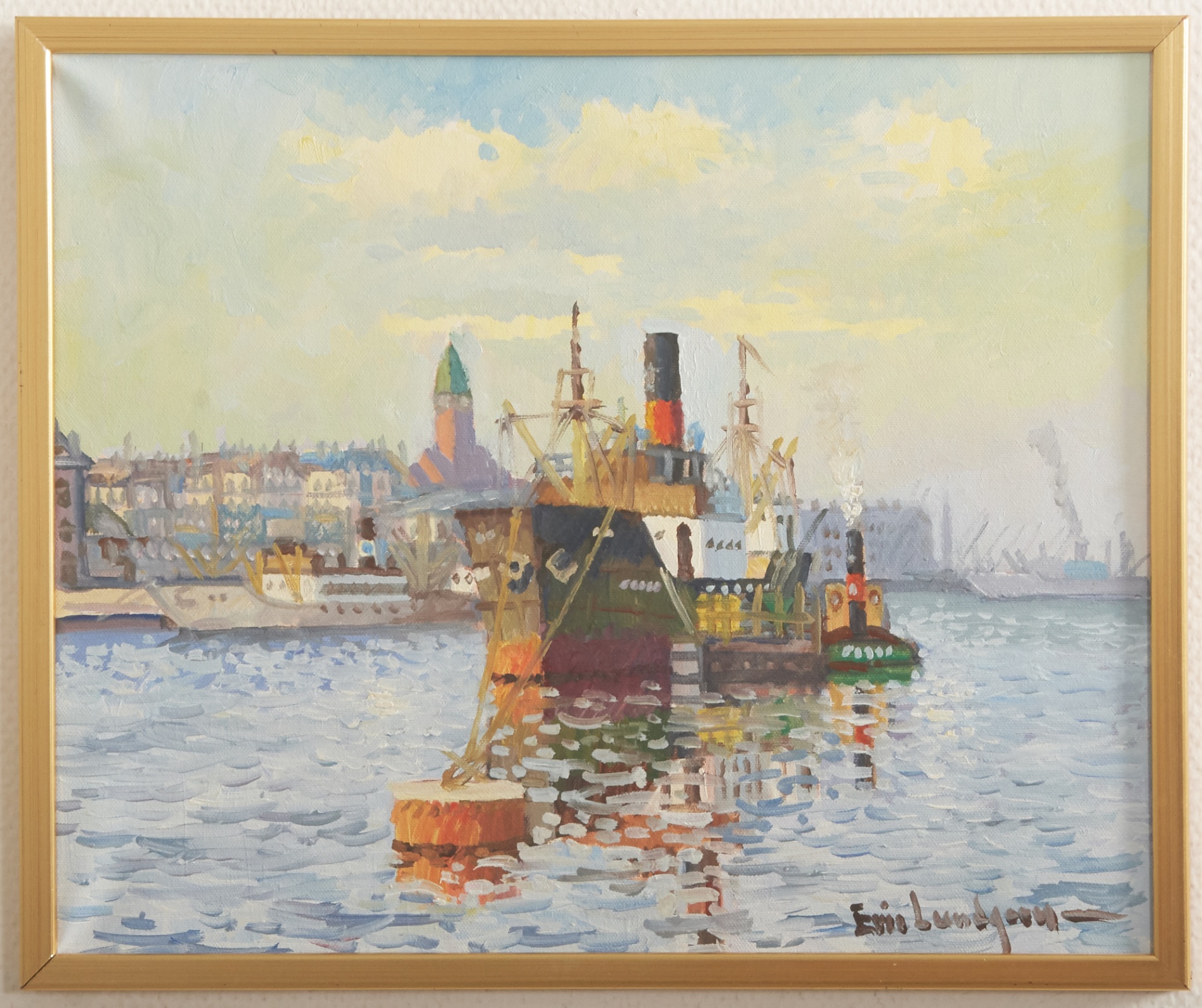 Göteborgs hamn, signerad. Bildmått 37,5 x 45,5 cm