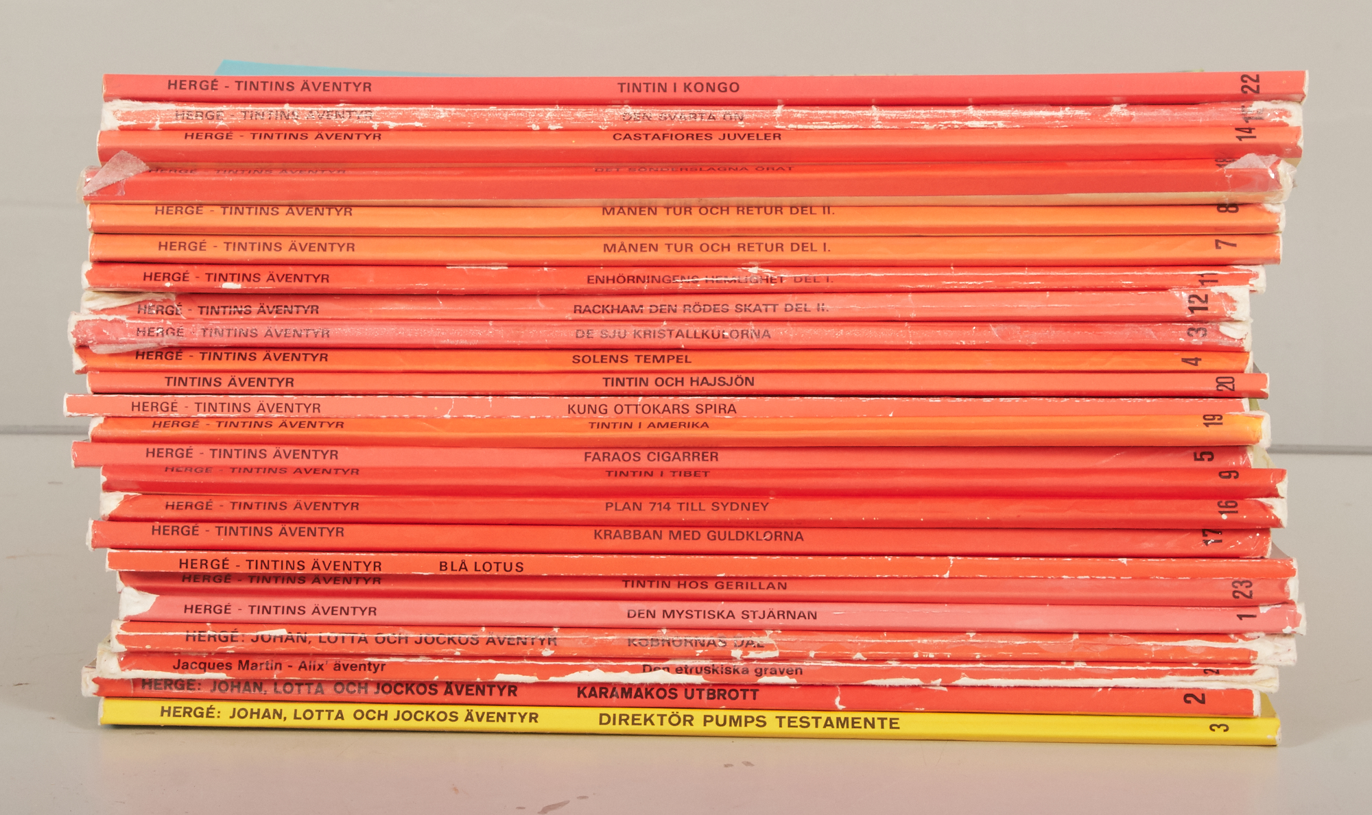 20 st Tintin, samt 4 övriga, slitage, samt skador, men Tintin i Kongo I:a upplaga, fint skick.