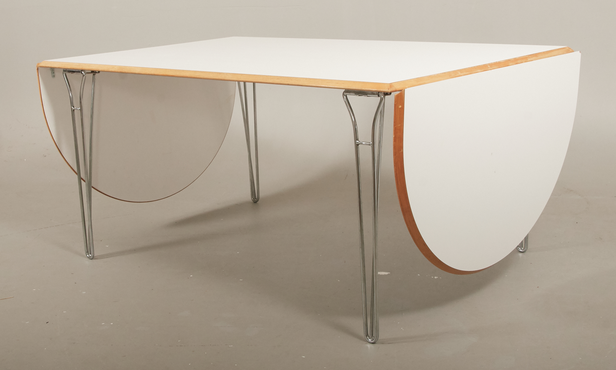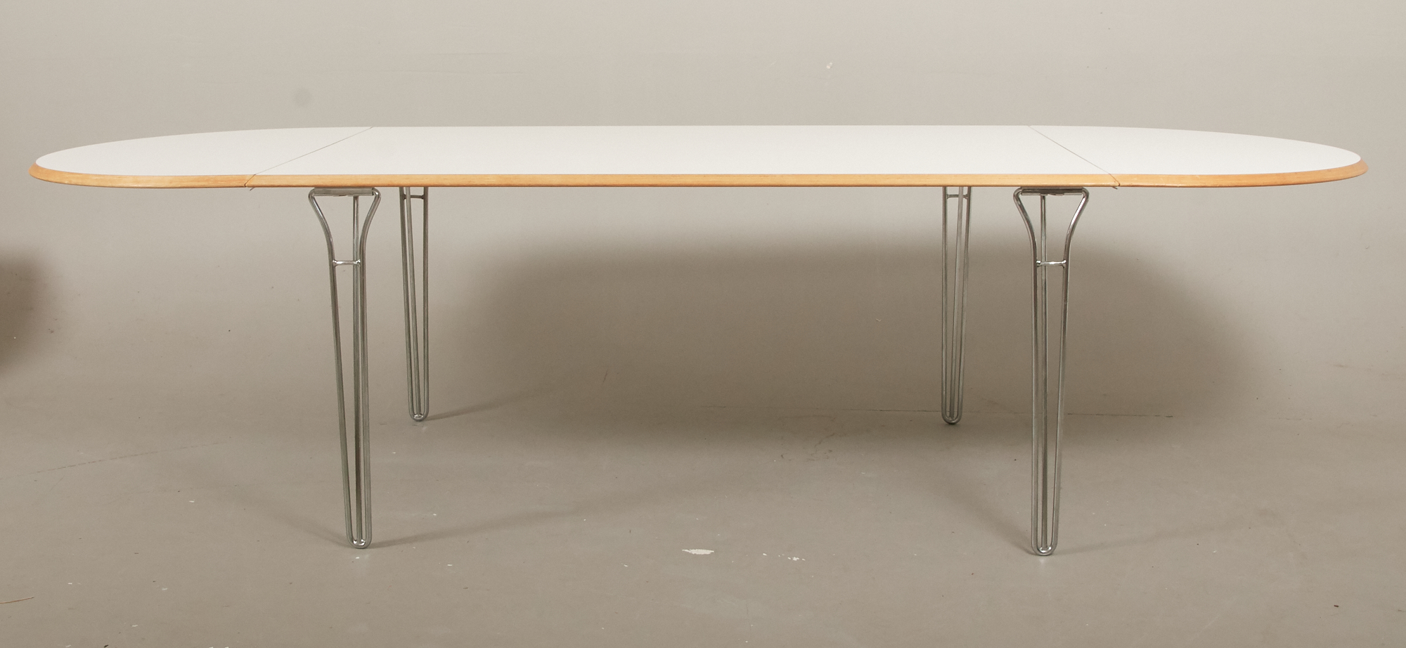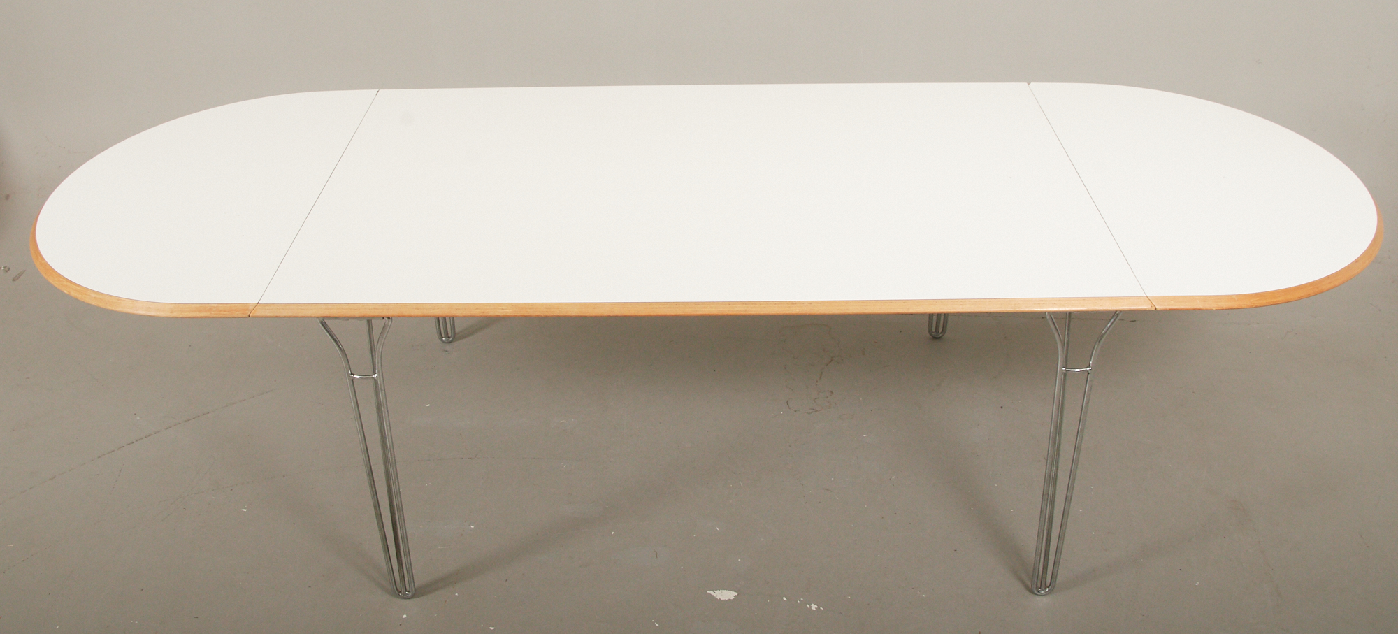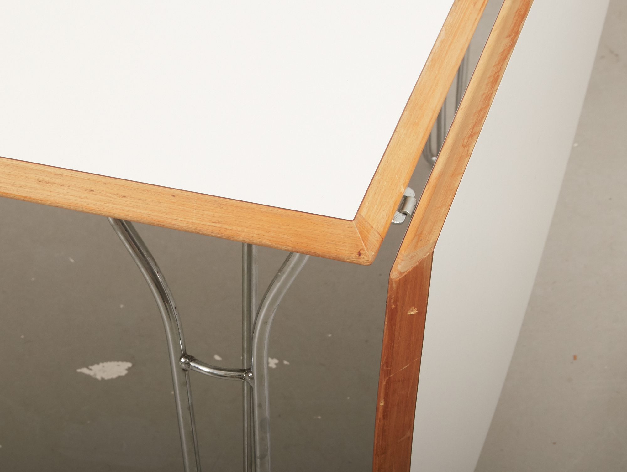 Skiva i vit laminat med träkant, 160 x 100 cm, 2 löstagabara skivor á 60 cm, höjd cm, smärre bruksslitage.