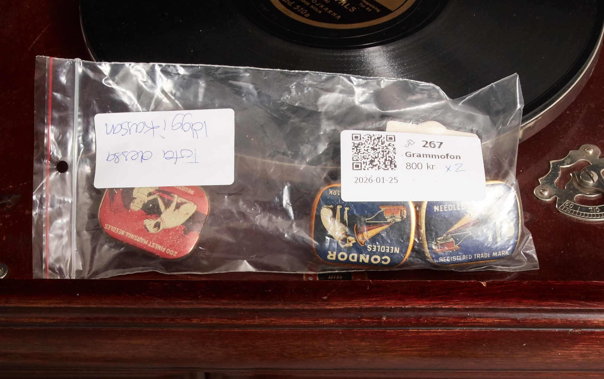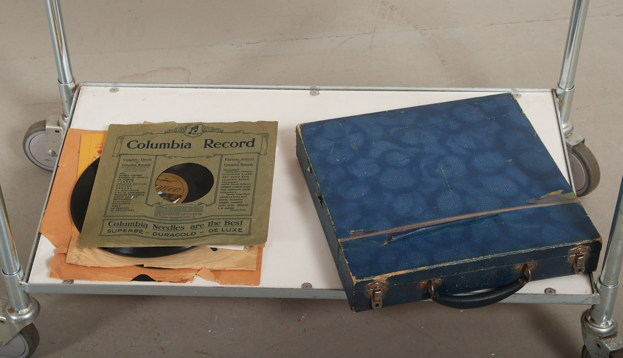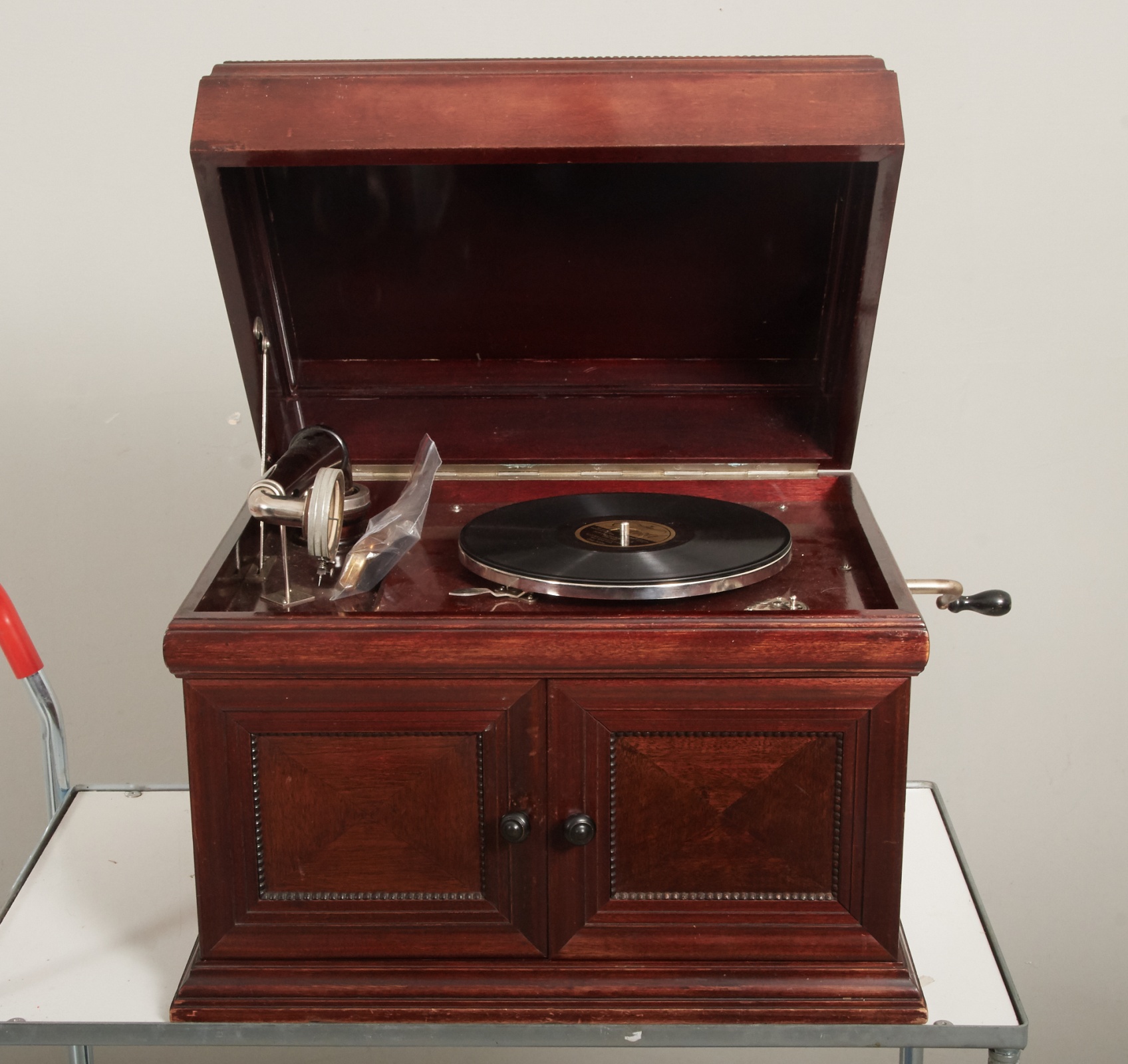 Omkring år 1900, smärre yttre bruksslitage, fungerar vid enklare test, diverse skivor medföljer