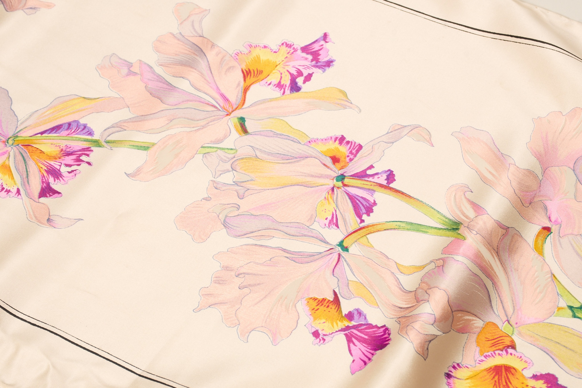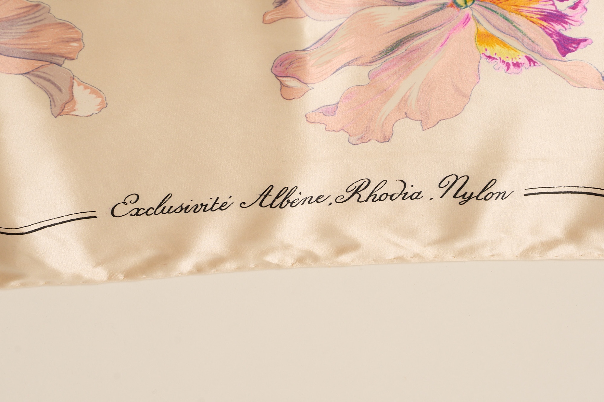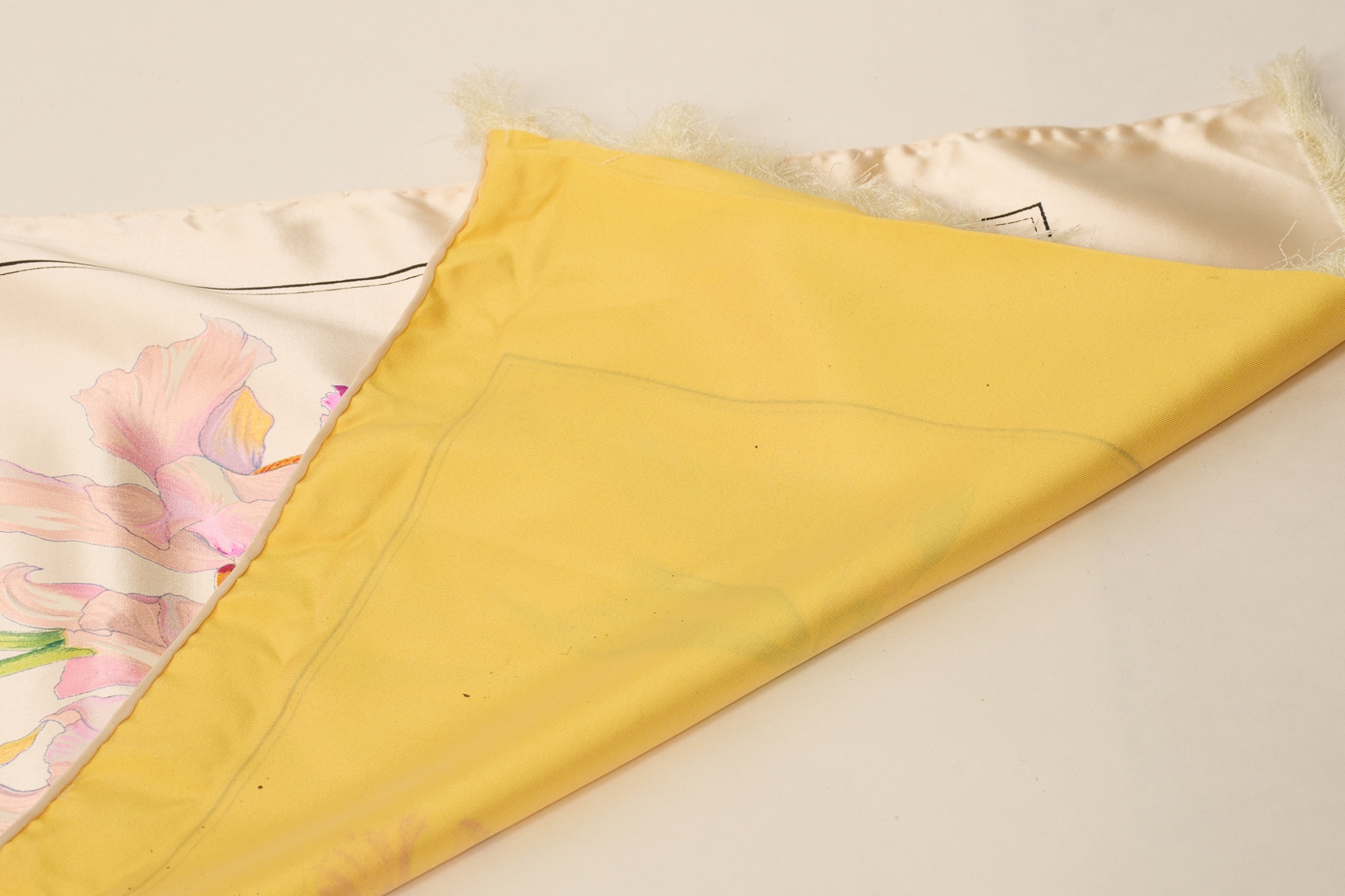 Exclusivité Albéne, Rhodia, med dekor av blommor, fodrad, 125 x 35 cm, smärre bruksslitage, något dekorslitage.