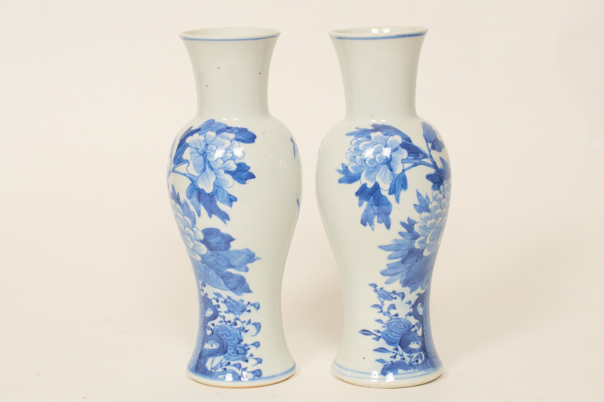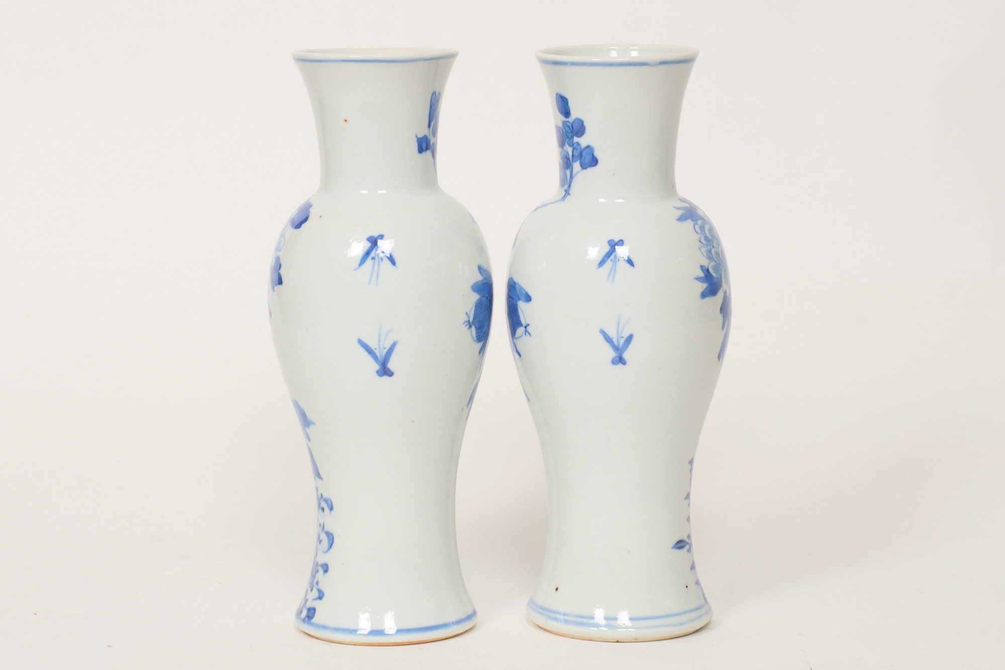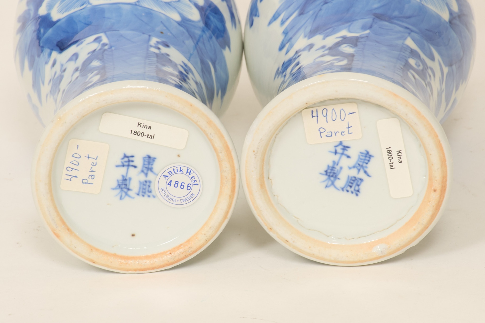 Ett par, dekor i underglasyrblått med fåglar, höjd 26 cm, gott skick