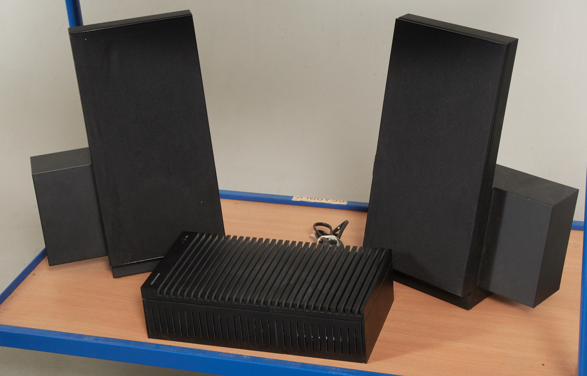 CD/kassettspelare, samt radio. Högtalare, fjärrkontroll, samt sladdar medföljer. Fungerar vi enklare test, funktionsgaranti lämnas ej. Smärre yttre bruksslitage.