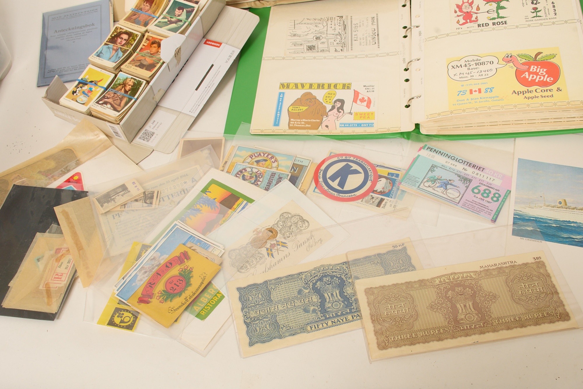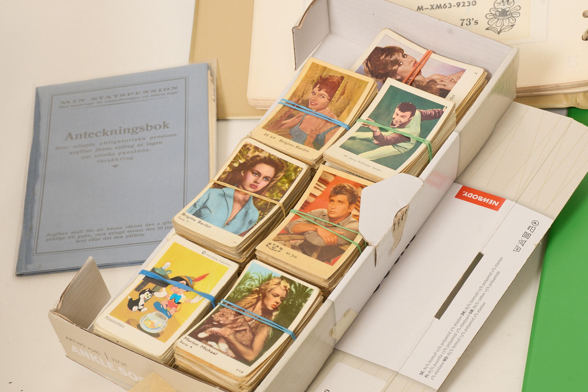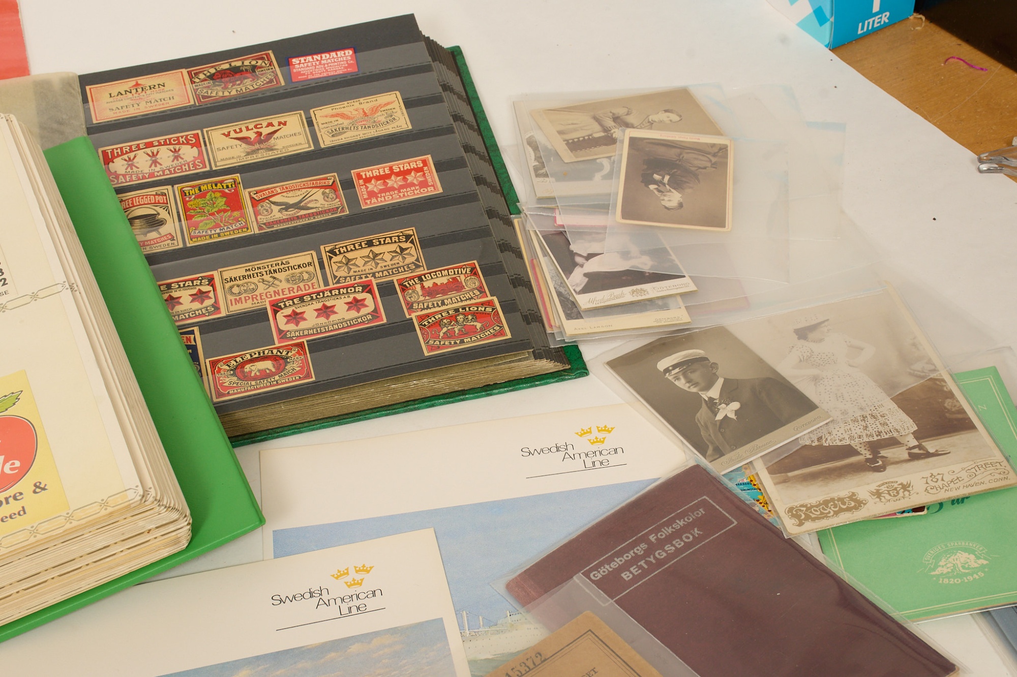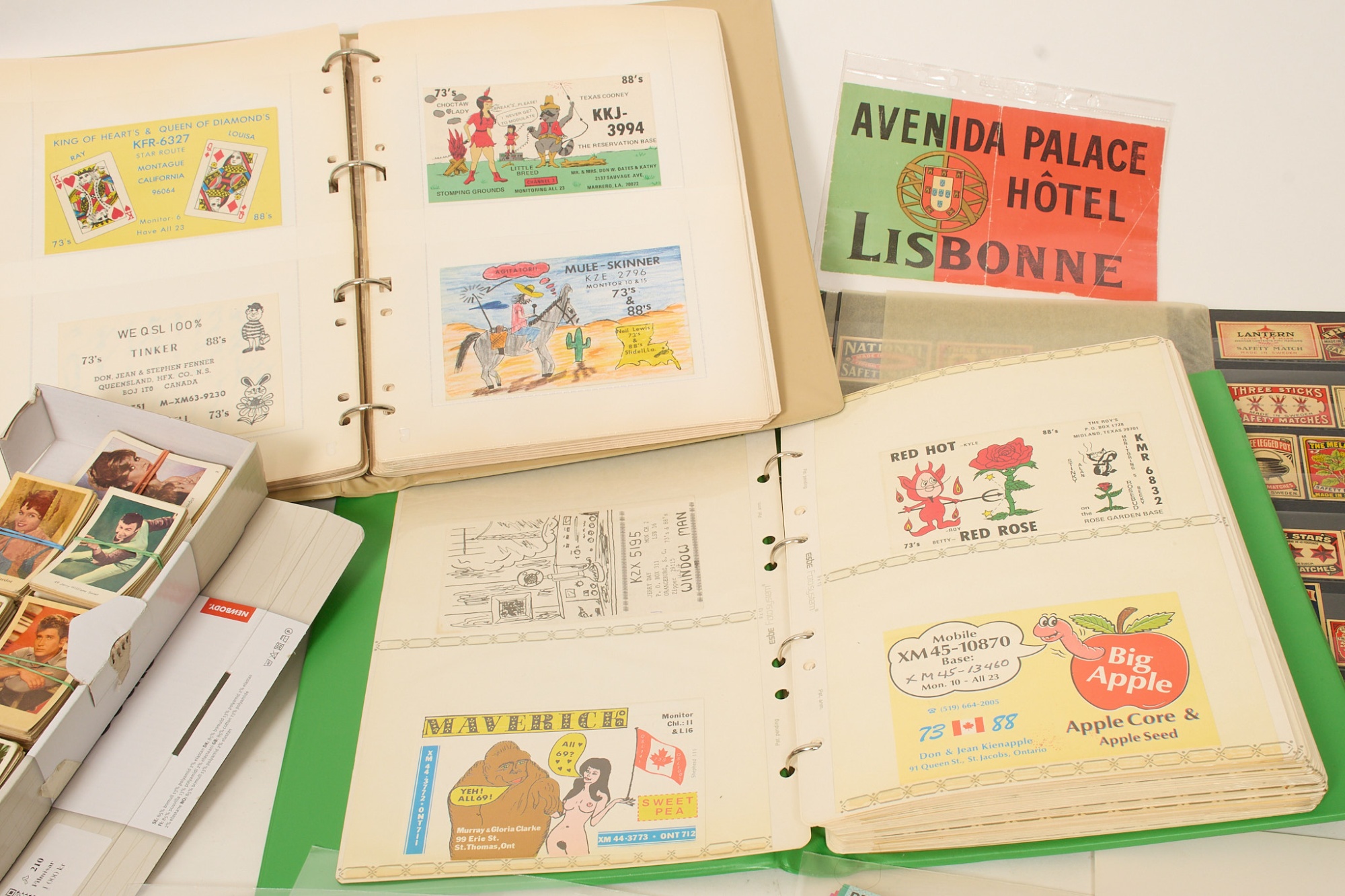 QSL-kort, ca 320 st från hela världen. Filmisar ca 650 st. SAL. Tändsticksetiketter. Ateljékort mm