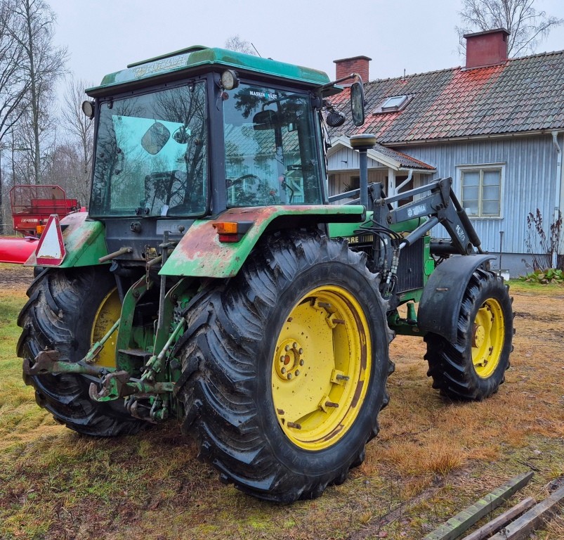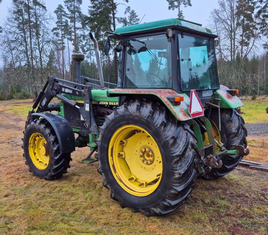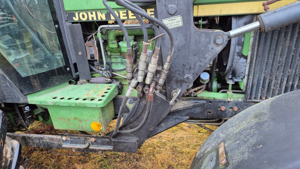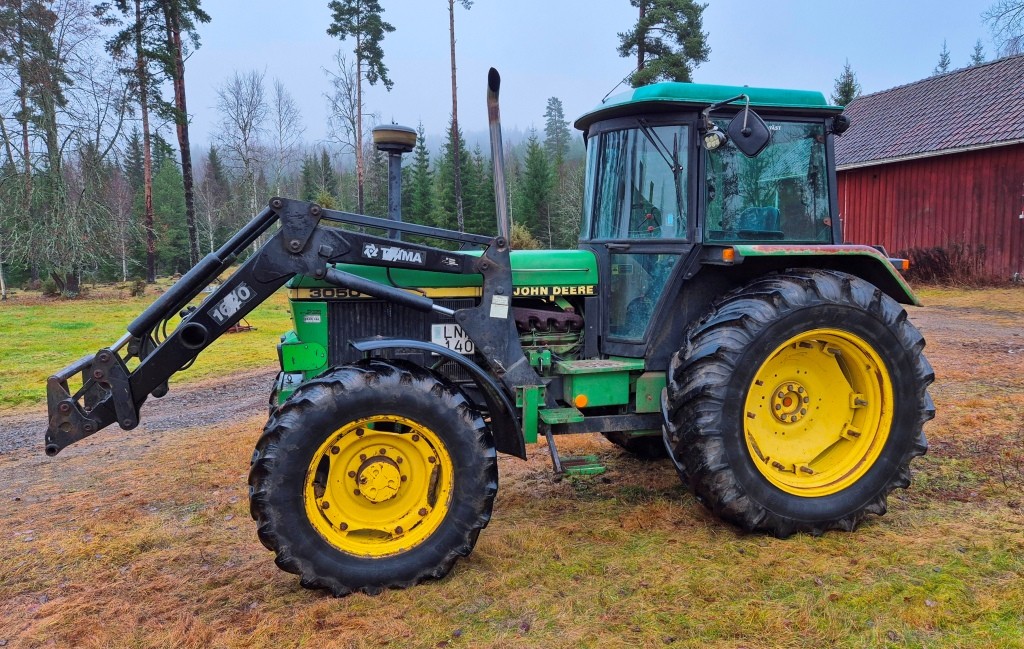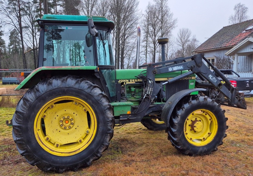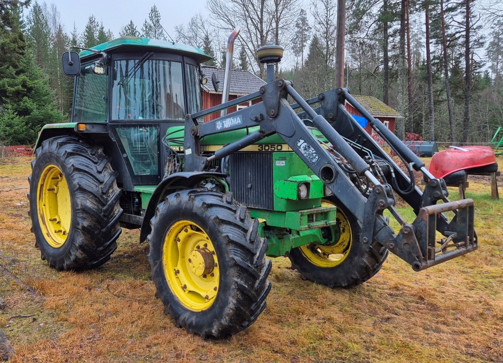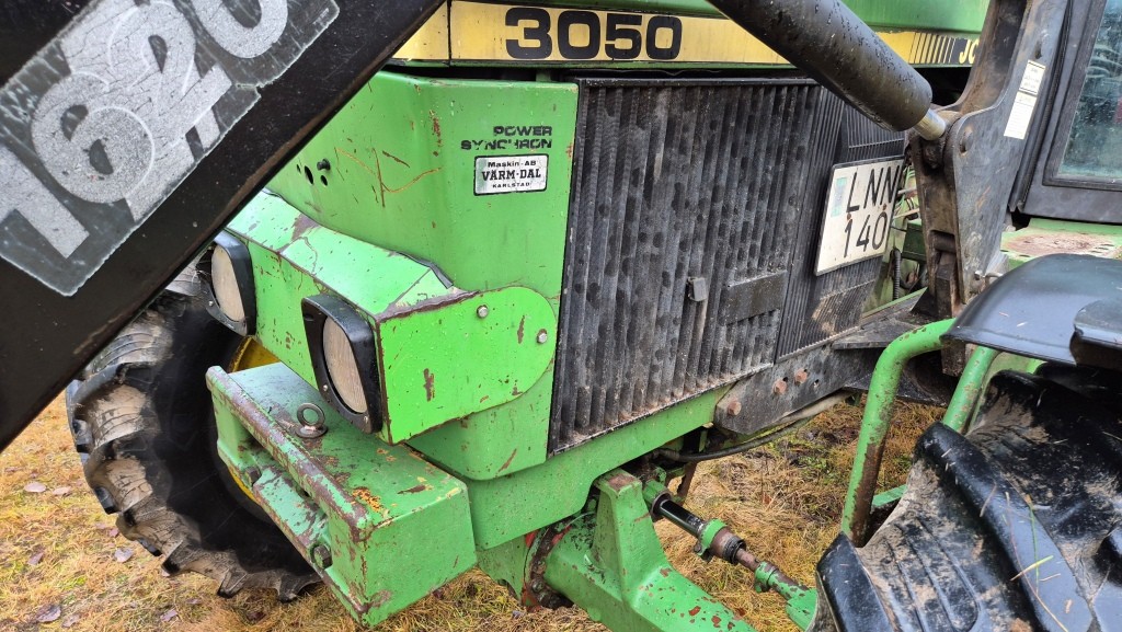 Märke/Modell: John Deere 3050 4wd (Turbokonverterad)Årsmodell: 1990Mätarställning: 11248 timmarMotor: 6 cyl diesel (92hk original, nu med turbo ca 110hk)Tjänstevikt (utan frontlastare): 4860 kg