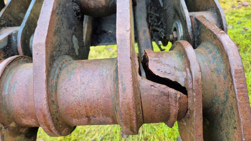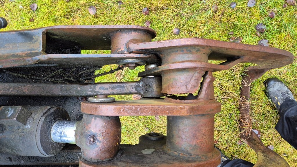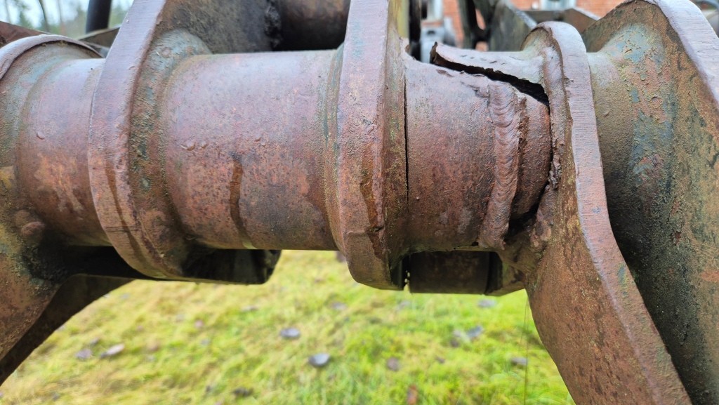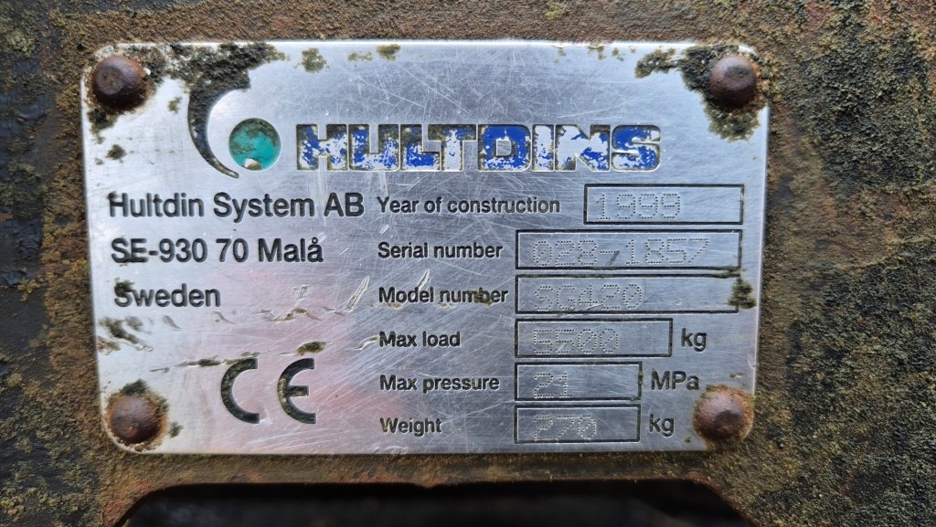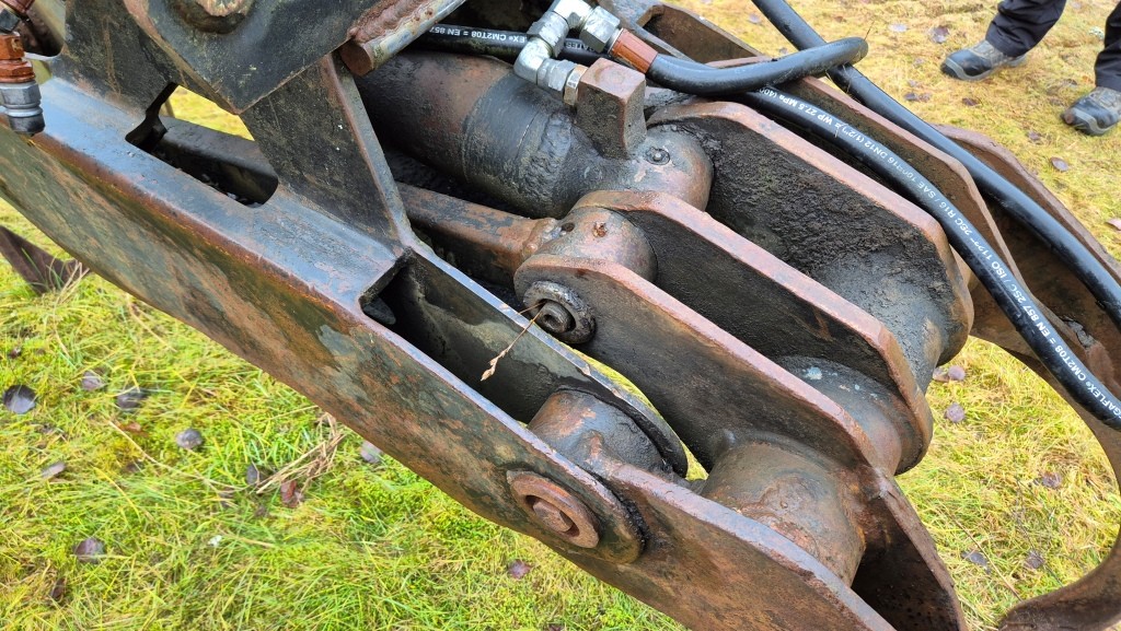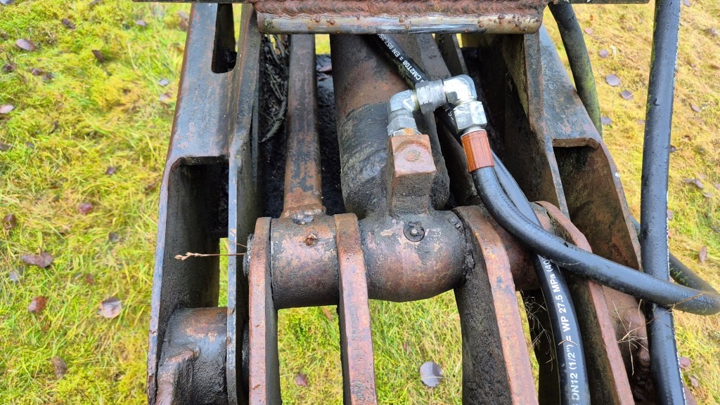 Timmergrip Hultdins SG420 till grävmaskin med renoveringsbehov, har spruckit i godset vid ena griphalvan och tappen till infästningen har släppt och blivit krokig. Säljes som rep.objekt.Fäste: S45