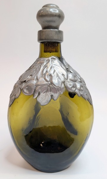 Grön glasflaska med utsmyckning i tenn