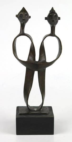 Bilder Okänd konstnär, skulptur, patinerad brons på träsockel, afrikanska tvillingar, otydligt signerad