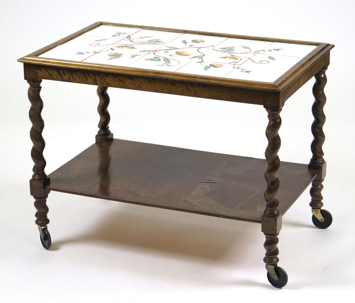 Serveringsvagn, svarvat och bonat trä med kakelplattor, 1930-40-tal