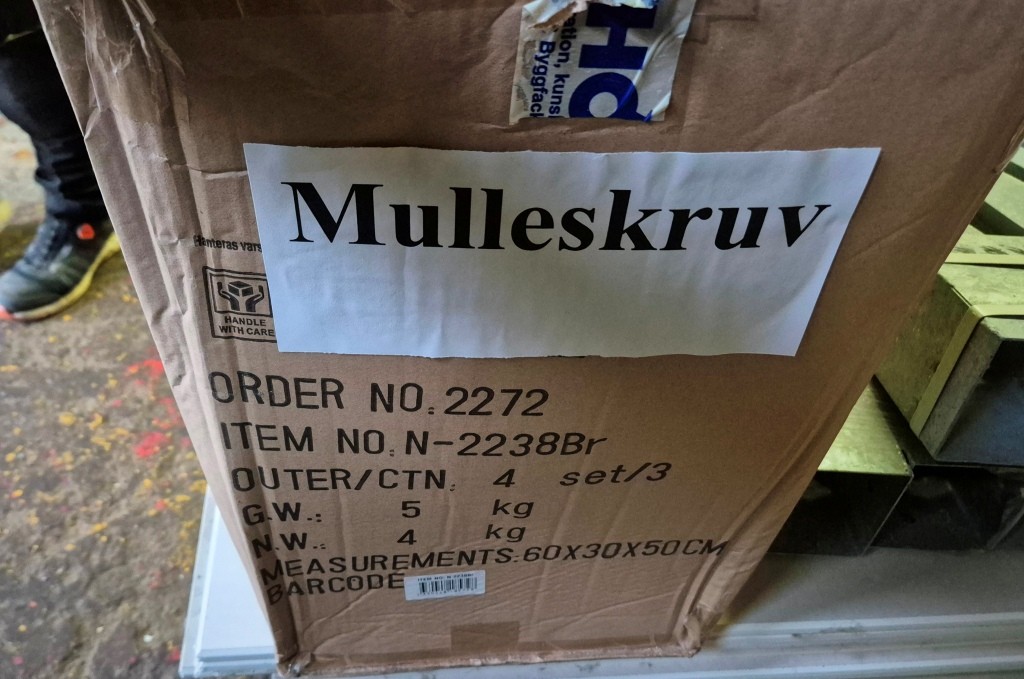 4 olika modeller19 st 97x97x750 mm9 st 71x71x750 mm5 st 45x45x500 mm+ ett antal "Mulleskruv"