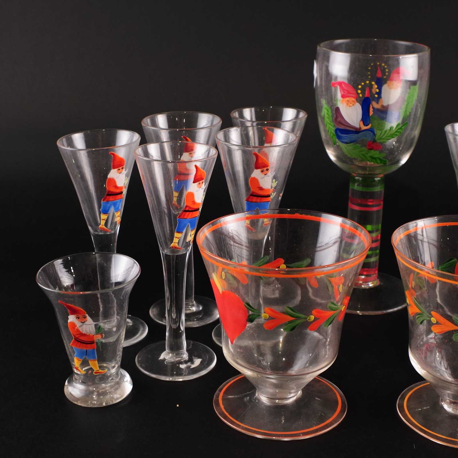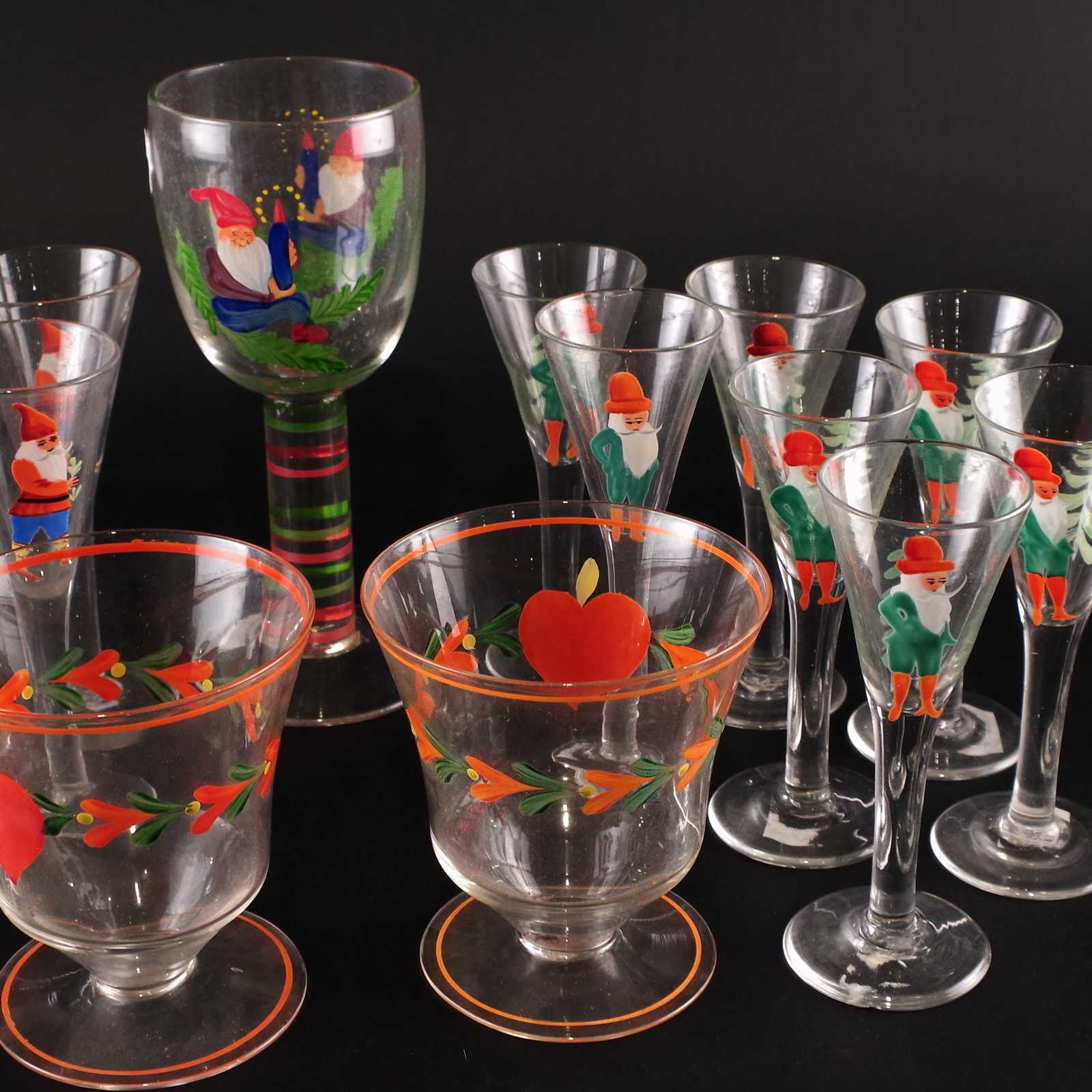 Parti GLAS äldre med julmotiv, handmålade. H:18,5cm största.