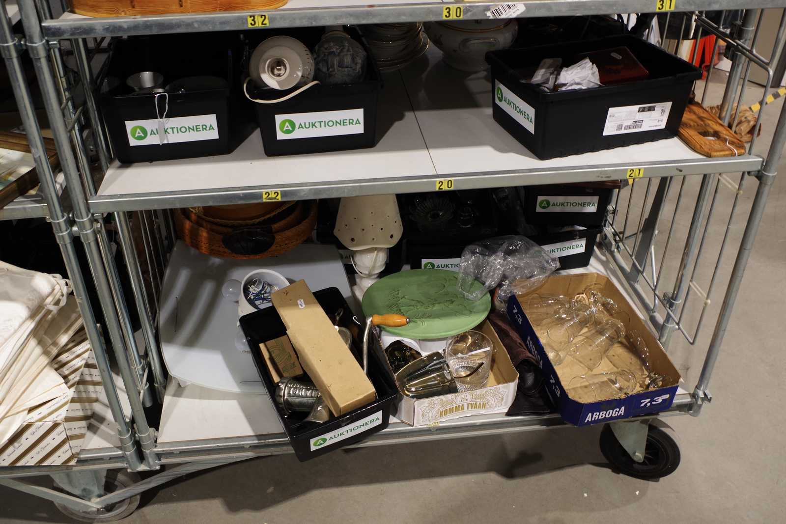 Parti OSÅLT GODS från tidigare auktioner. Säljes till förmån för AjaBajaCancer. Obs! Köparen måste ta hela partiet. (skador kan förekomma, vagnen ingår ej)