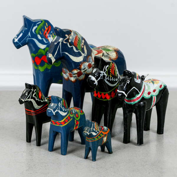 Dalahästar, 6 st, bla Nils Olsson, Nusnäs