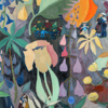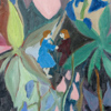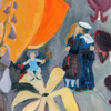Astrid Forselius Johnson, blomster med figurscener, olja på duk, signerad
