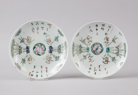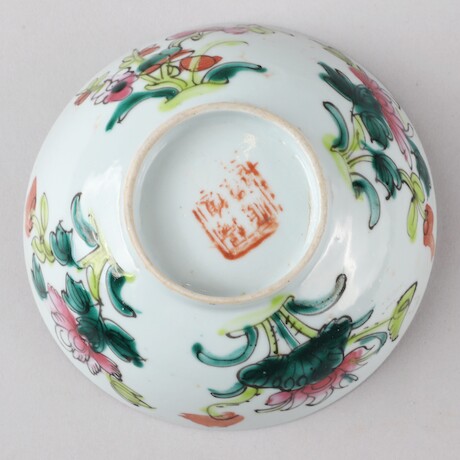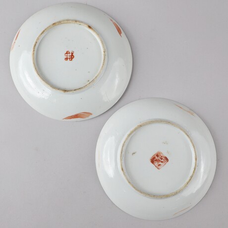 Auktioner Keramik & Porslin Fat, 2 st, Kina, 1800-tal, D = 17 resp 16,5 + skål, Kina, 1900-tal, D = 12,5