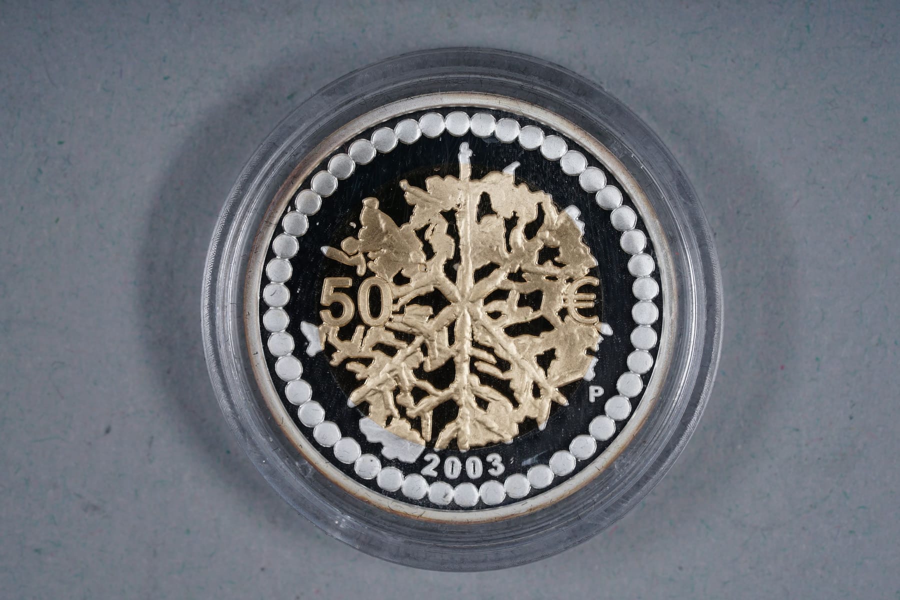 50 euro, kulta-/hopeakolikko, Rahataiteen juhlaraha, Suomi 2003
