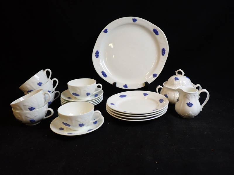 6 koppar med fat, 4 assietter,kakfat,sockerskål+snäcka