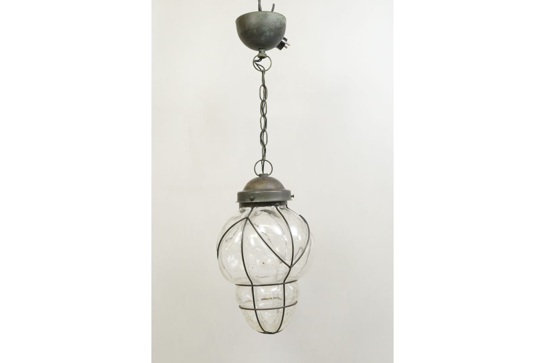 Bilder Taklampa, glas och metall, möjligen Skansen