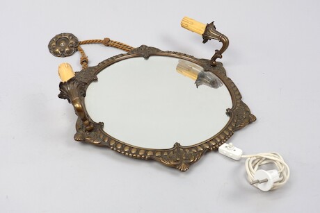 Bilder Spegel med belysning, 1920-tal, patinerad brons diameter 45 cm, fasettslipat glas