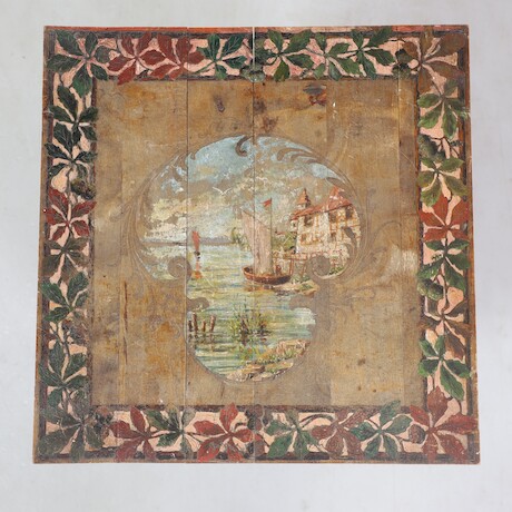 Bilder Bord 18-1900-tal med målad skiva 51 X 51 H=63
