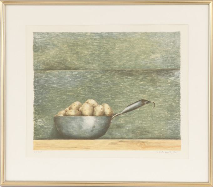 Färglitografi, potatisskopa. Signerat och numrerat. Daterat 76. Inramat.