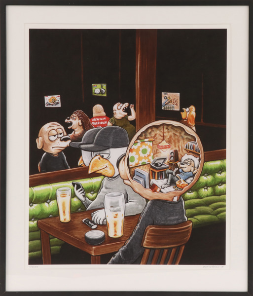 Färglitografi, kroginteriör. Signerad och numrerad. Daterad 18.