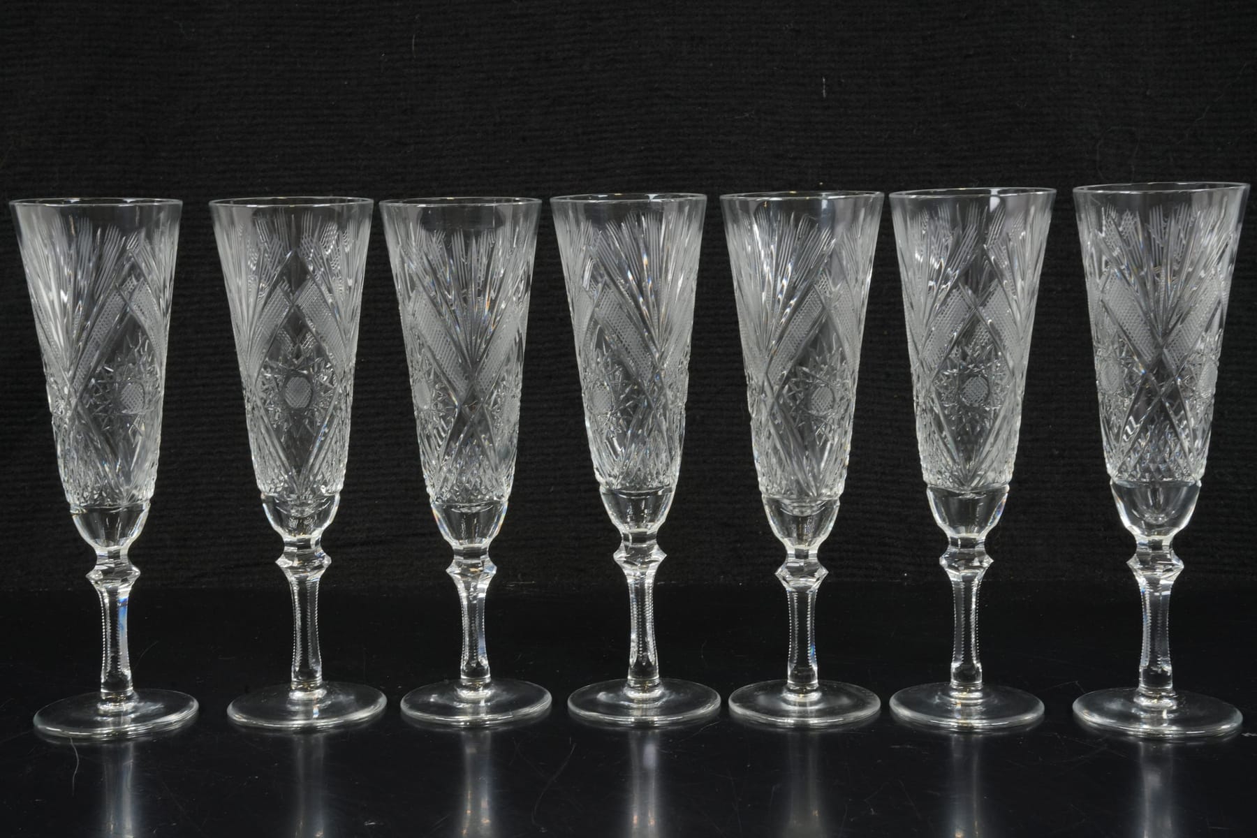 Bilder CHAMPAGNEGLAS, 7 st, slipad dekor, 1900-tal