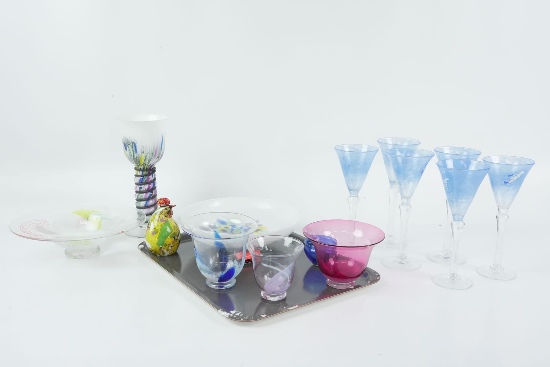 CHAMPAGNEGLAS, 7 st, slipad dekor, 1900-tal