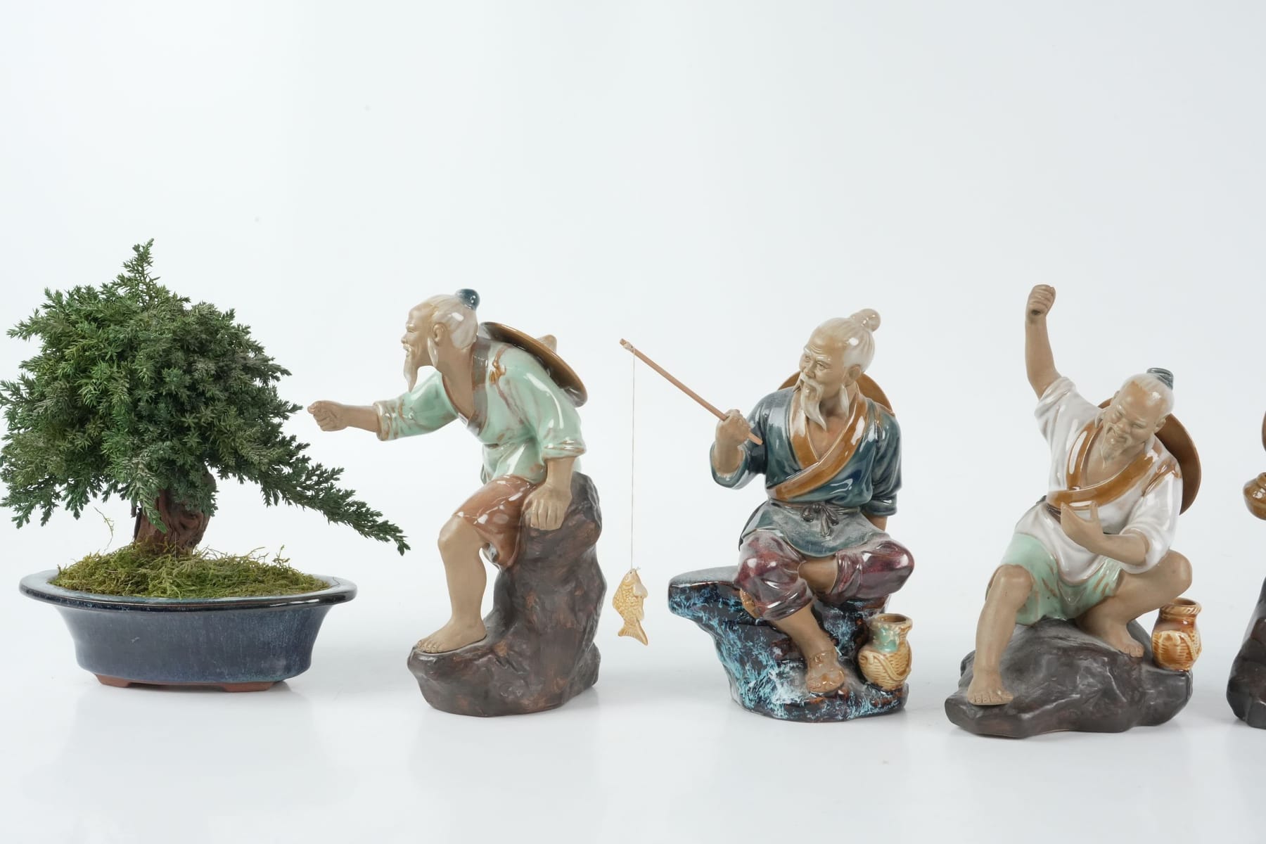 FIGURINER, 7 st, samt MODELLBONSAI, Kina, 1900-tal