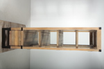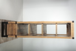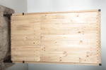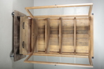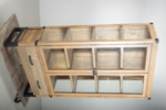 Betsad trä. Glasad dörrpar med bakomliggande hyllplan. Låda nedtill. H= 170cm B= 90cm Djup= 40cm