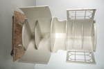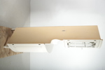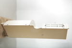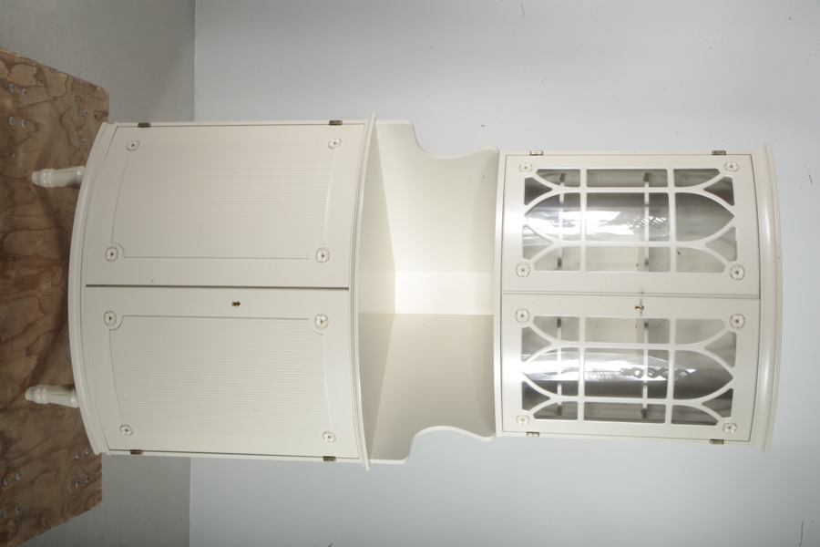 Delbart. Överdel: Glasad dörrpar med bakomliggande hyllplan. Mittdel: Öppen avlastningsyta. Nedtill: Dörrpar med bakomliggande hyllplan. Nyckel medföljer. H= 180cm B= 90cmDjup= 50cm
