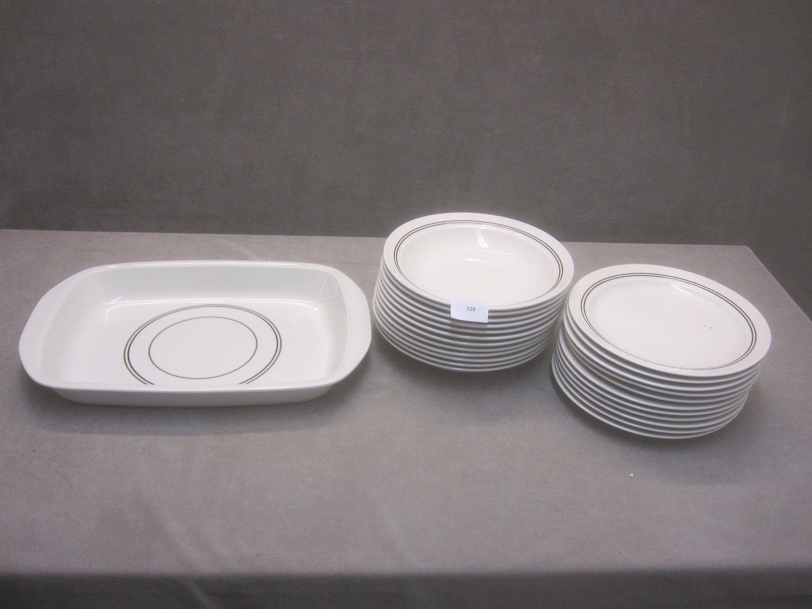 12st Assietter: (Dia= 17cm)12st Fat: (Dia= 13cm)10st Koppar: (H= 6cm) (Dia= 7cm)1st Gräddkanna