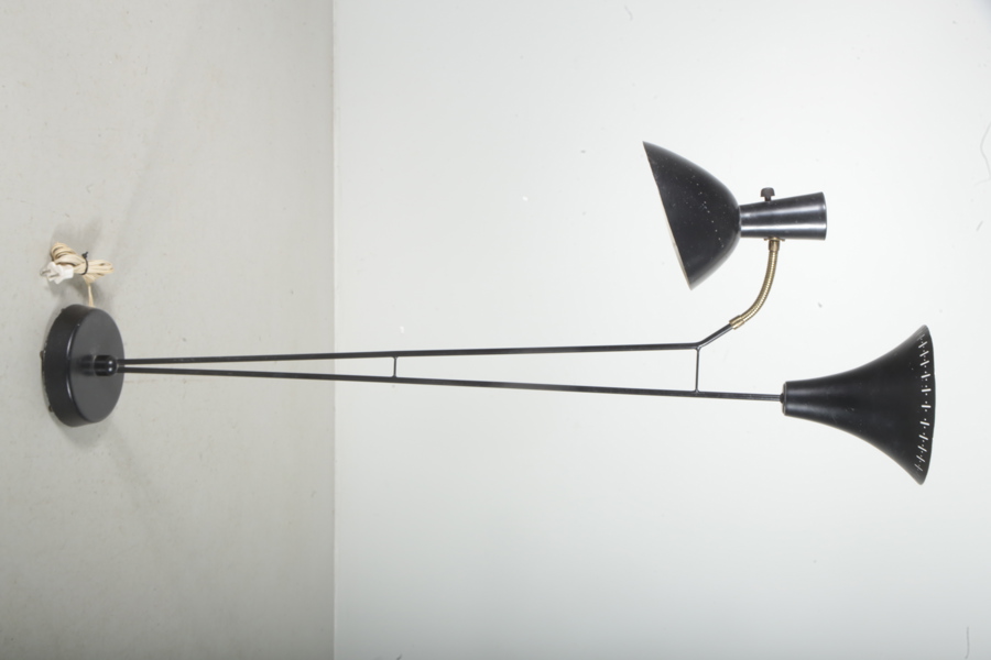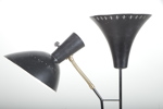 Svartlackad metall. 2st skärmar varav 1st böjbar. Modellen formgiven: 1955-1956H= 135cm