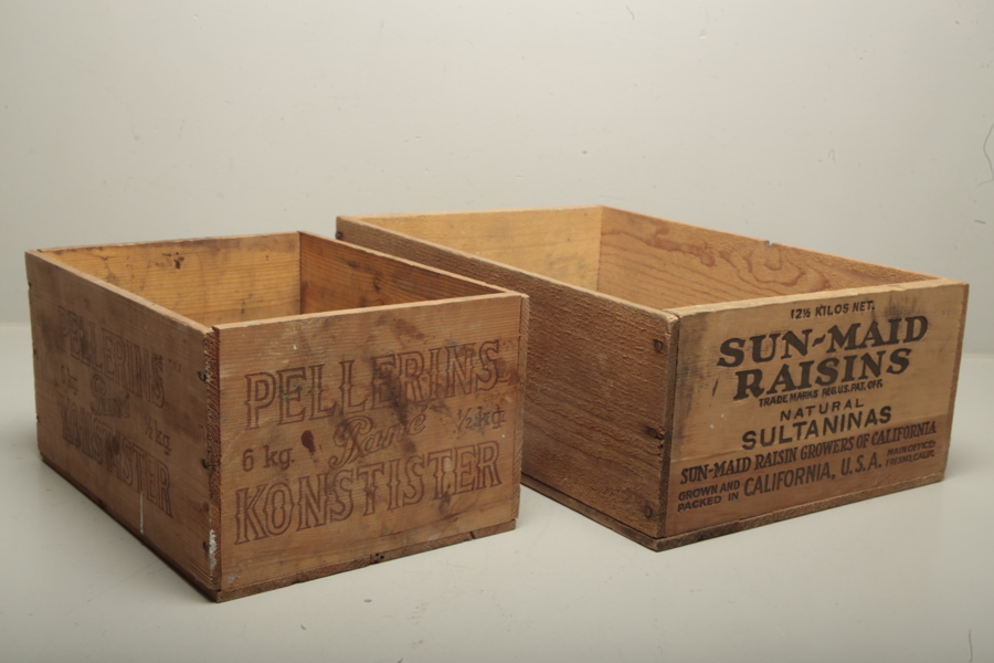 Lådor med text. 1st: (H= 16cm) (Mått= 43x30cm)1st: (H= 16cm) (Mått= 30x32cm)