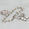 Halsband med pärlor, ring och örhängen. Vikt 16g.