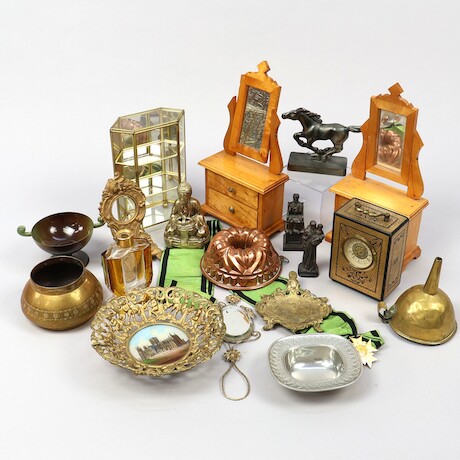 Bilder Smyckeskrin, figuriner, bordsur mm, höjd 30 cm och lägre