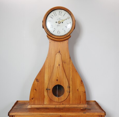 Bilder Skänk m. klocka, 1800-tal, furu, lod, pendel och vev, 105 x 44, H = 216
