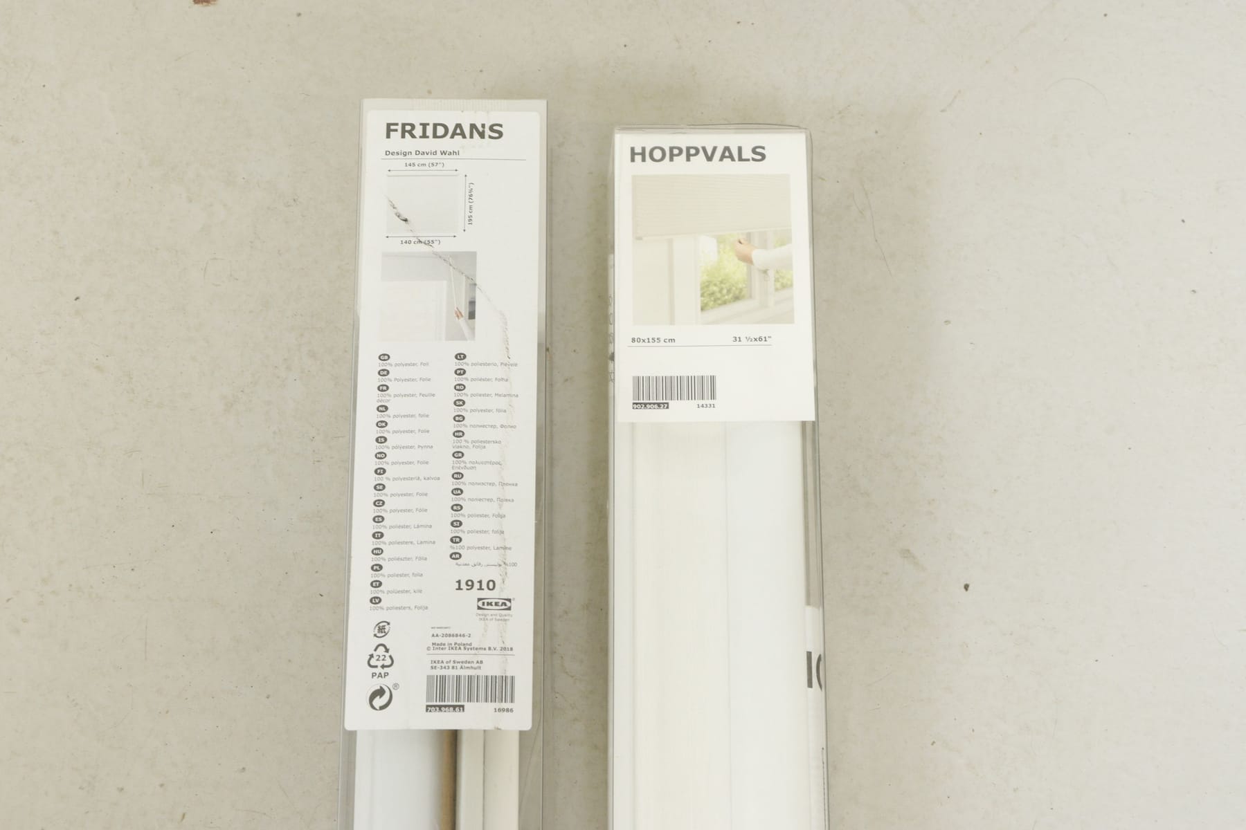 Rullgardin och jalussigardin, "Fridans" och "Hoppval", Ikea