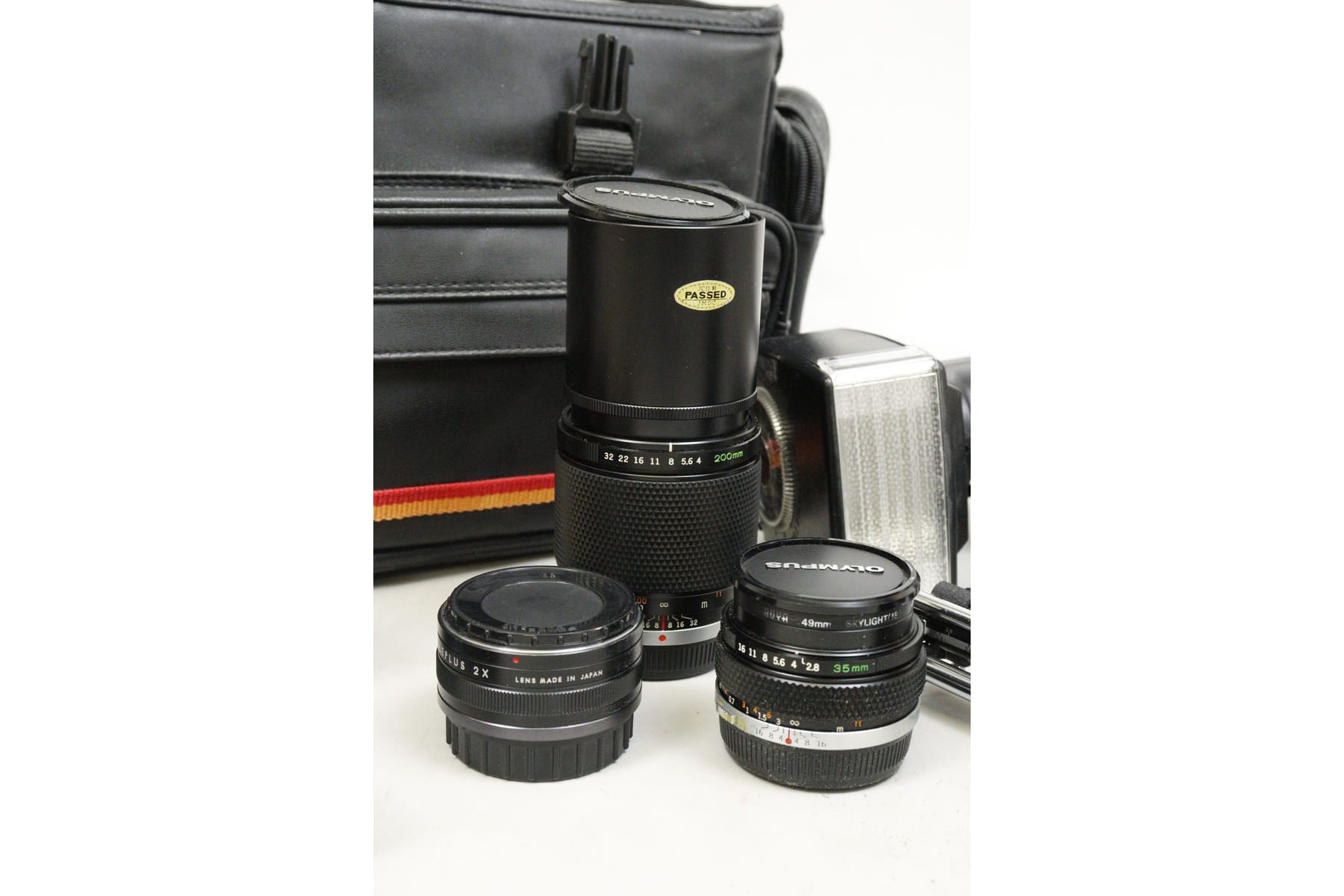 Kamera, Olympus OM2, med objektiv, väska mm