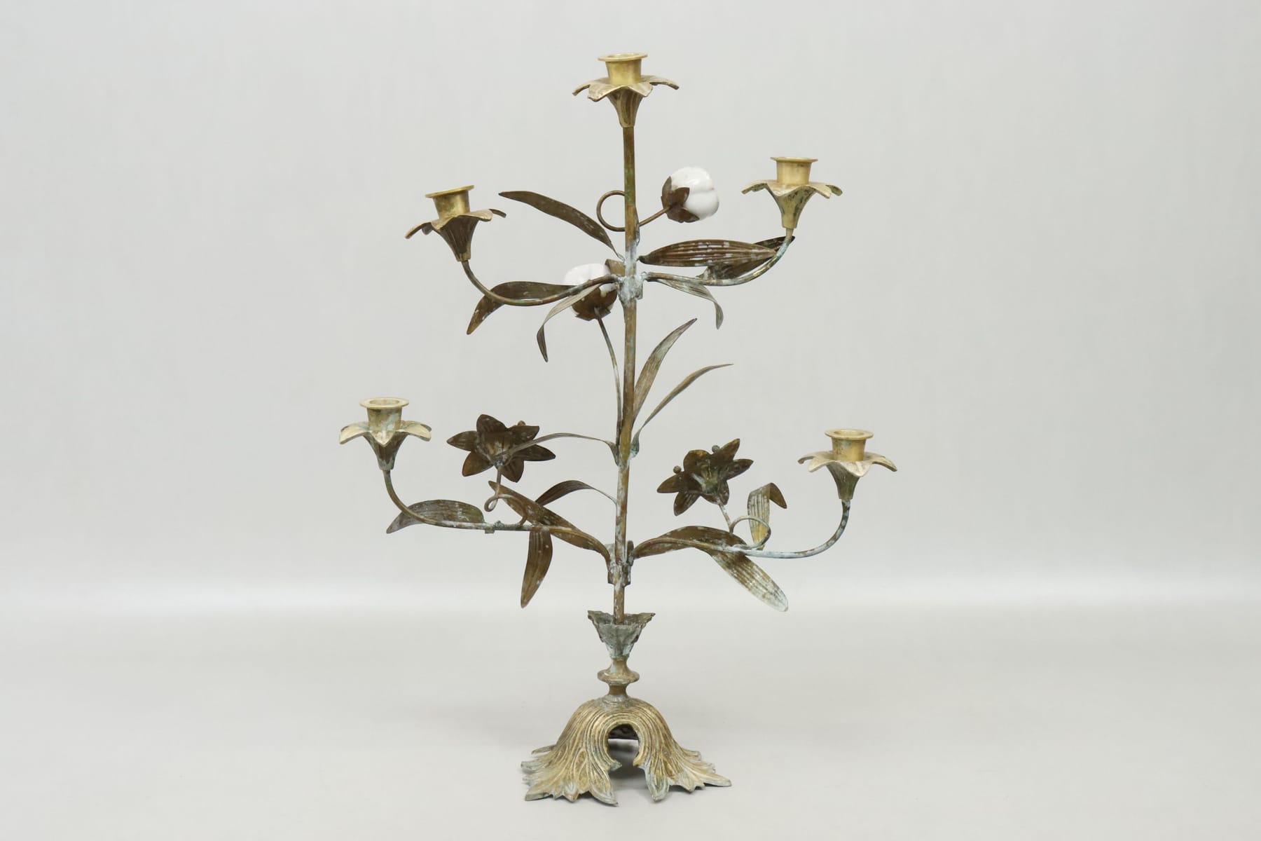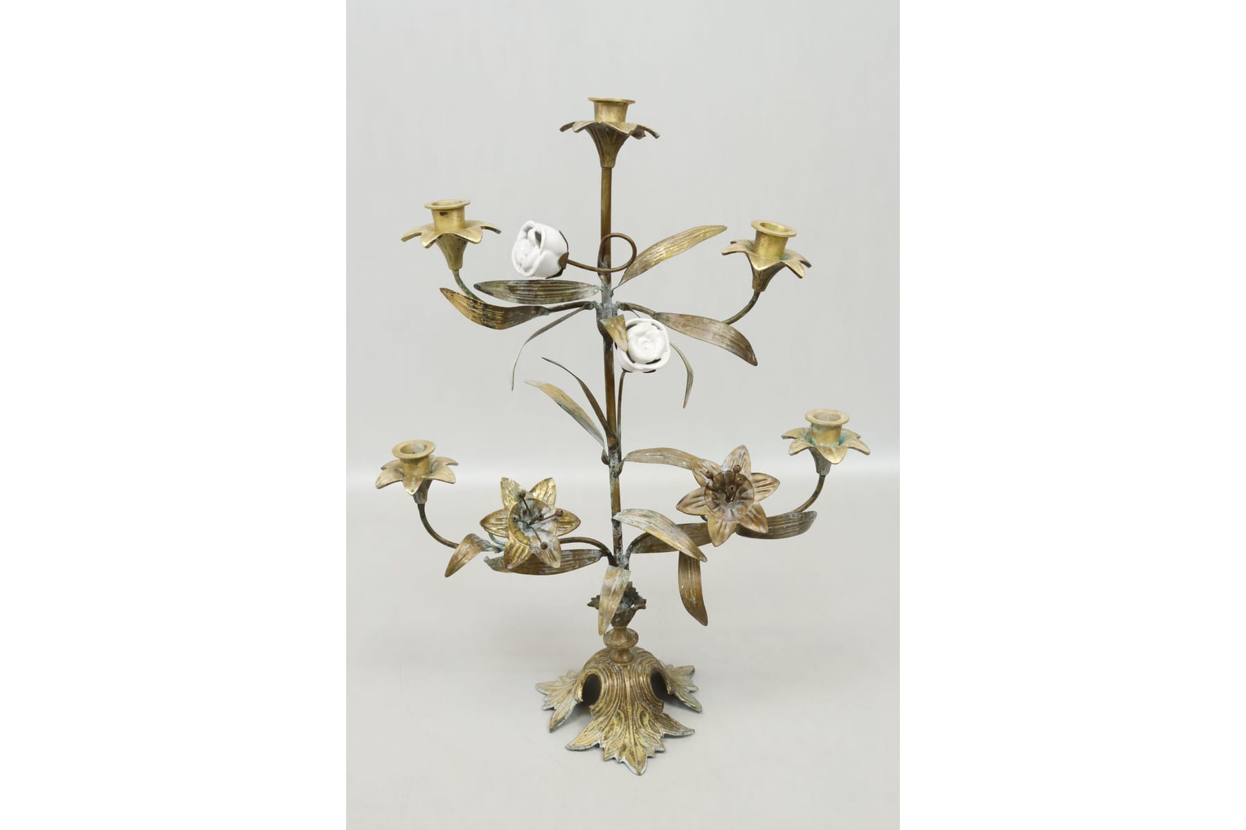 Kandelaber, 5-armad, med blomdekor, metall och keramik, troligen Frankrike