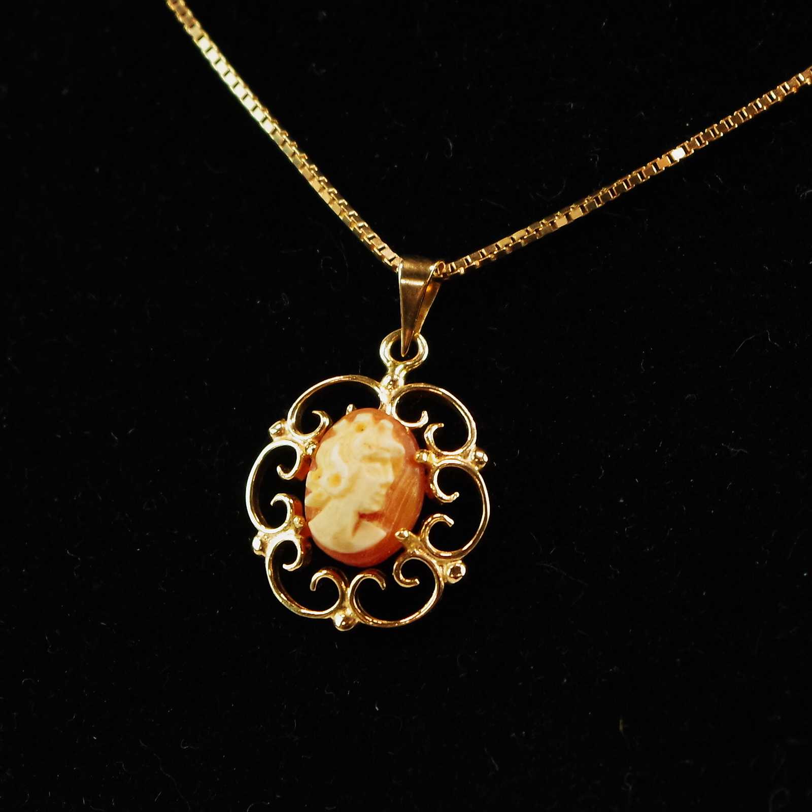 Bilder HALSKEDJA L:42 cm & BERLOCK med camé Guld 18K Total V:4 g