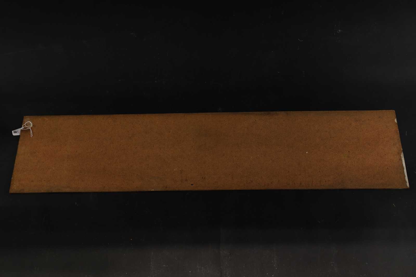 REKLAMSKYLT Flinta, ensidig, tryckt på masonit, 1900 talets mitt. 110x25cm (slitage, färgbortfall, märken)