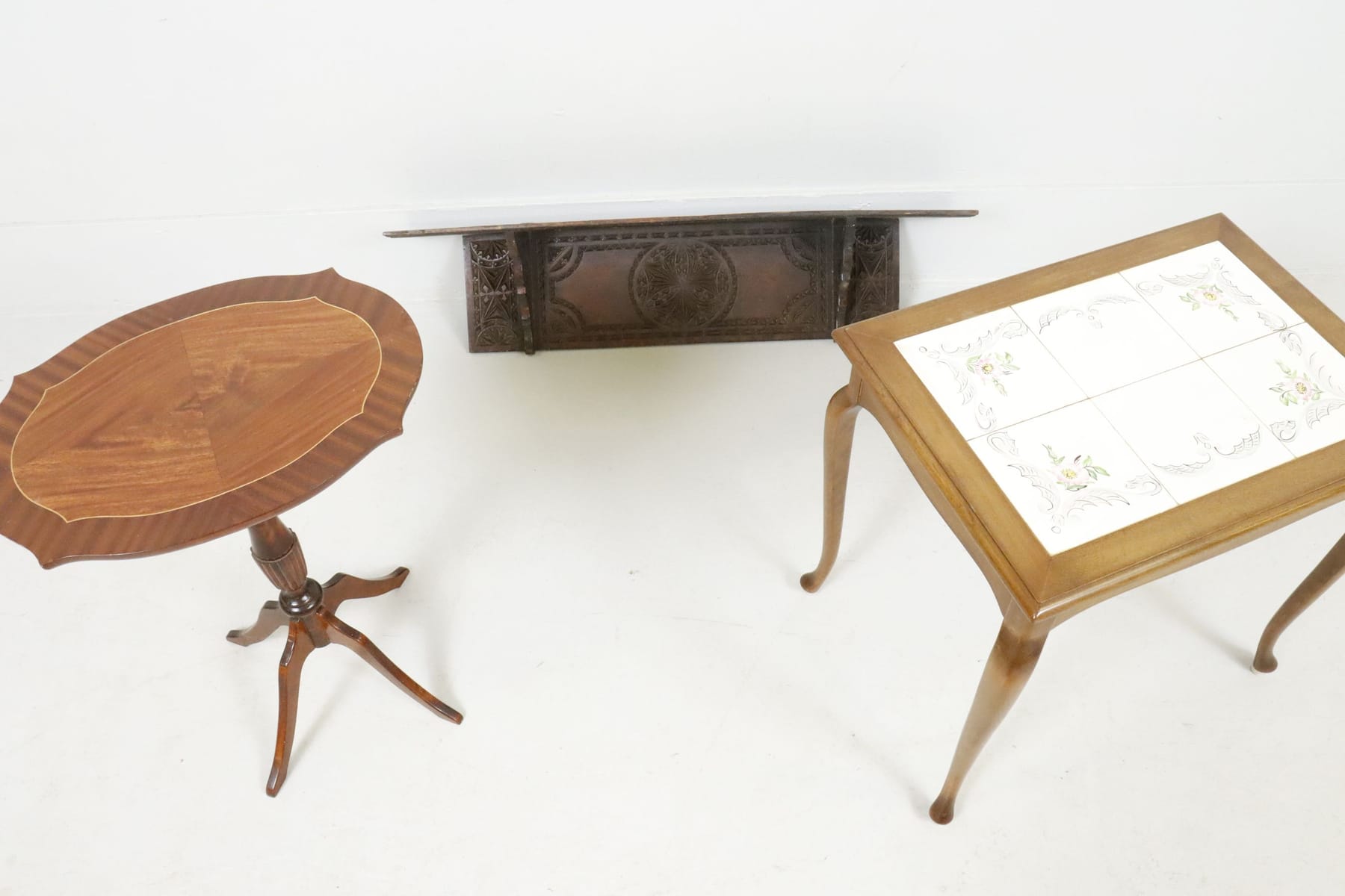 Vägghylla och 2 bord