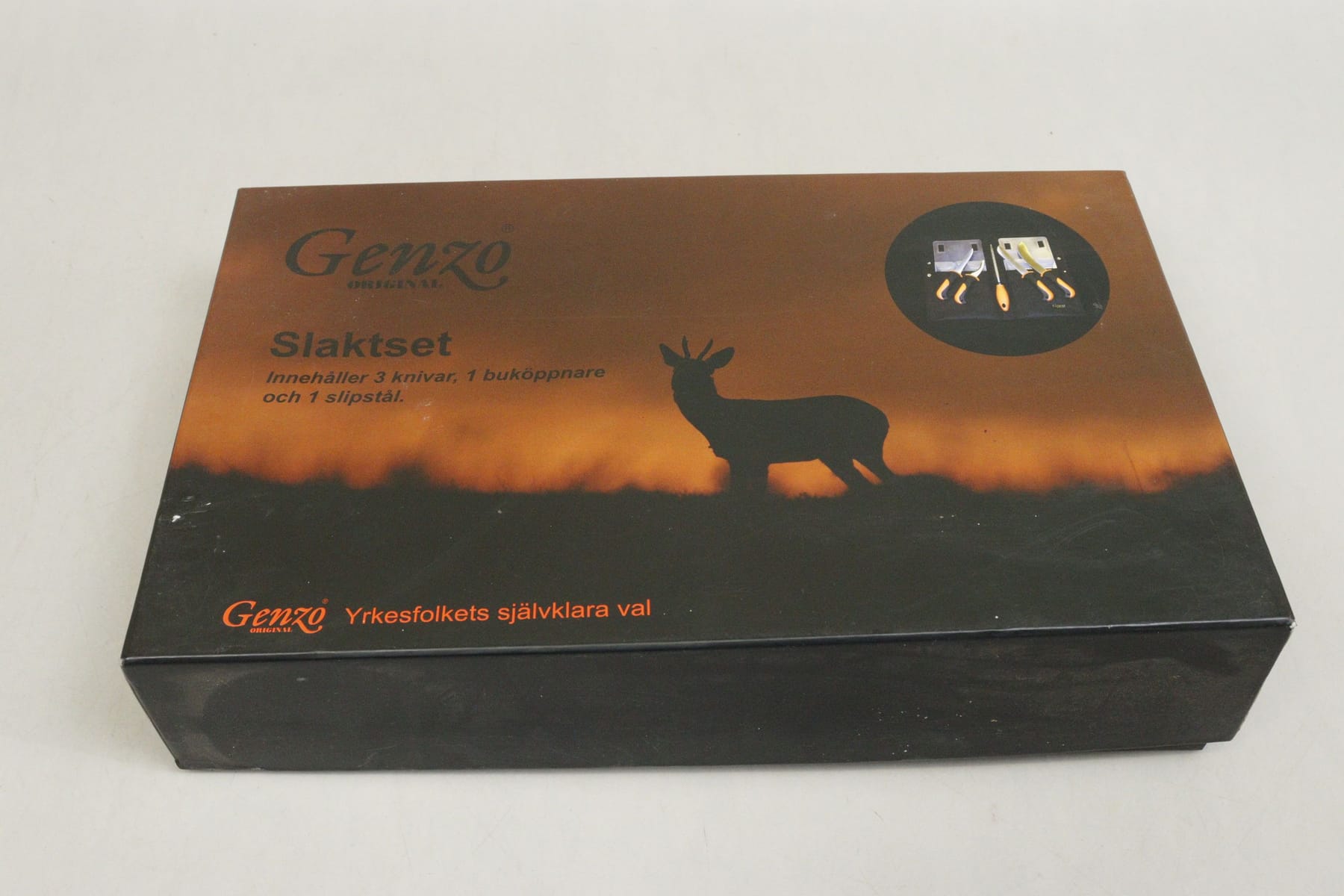 Slaktset, Genzo, 3 knivar, burköppnare samt slipstål