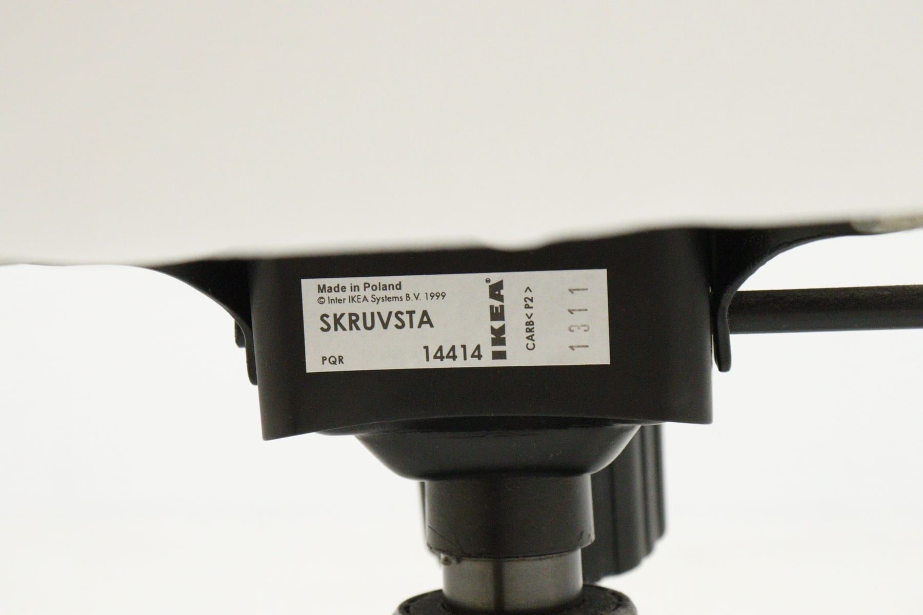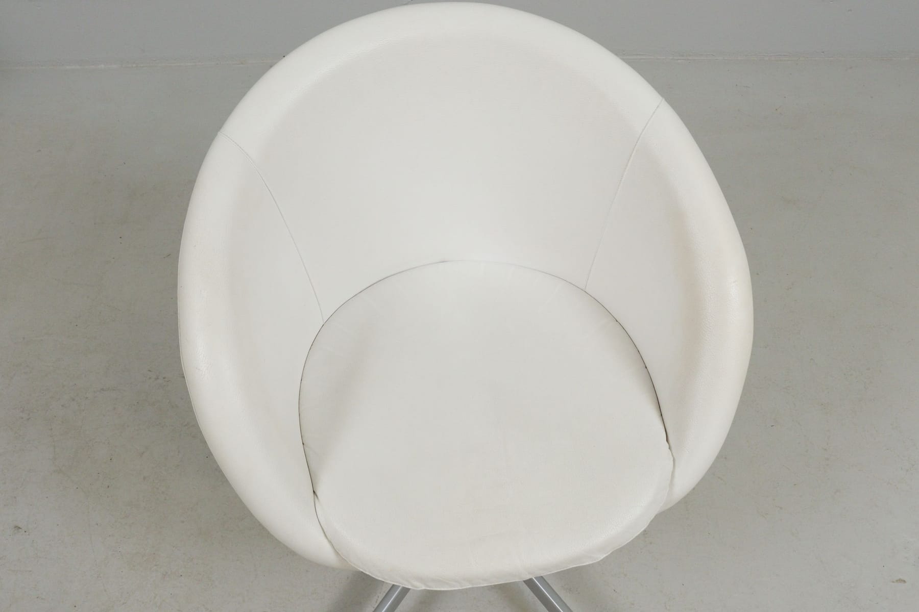 Snurrfåtölj på hju, "Skruvsta", Ikea, vitt konstskinn