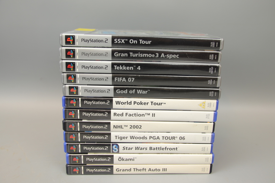 Playstation 2, med tillbehör och 12 spel.