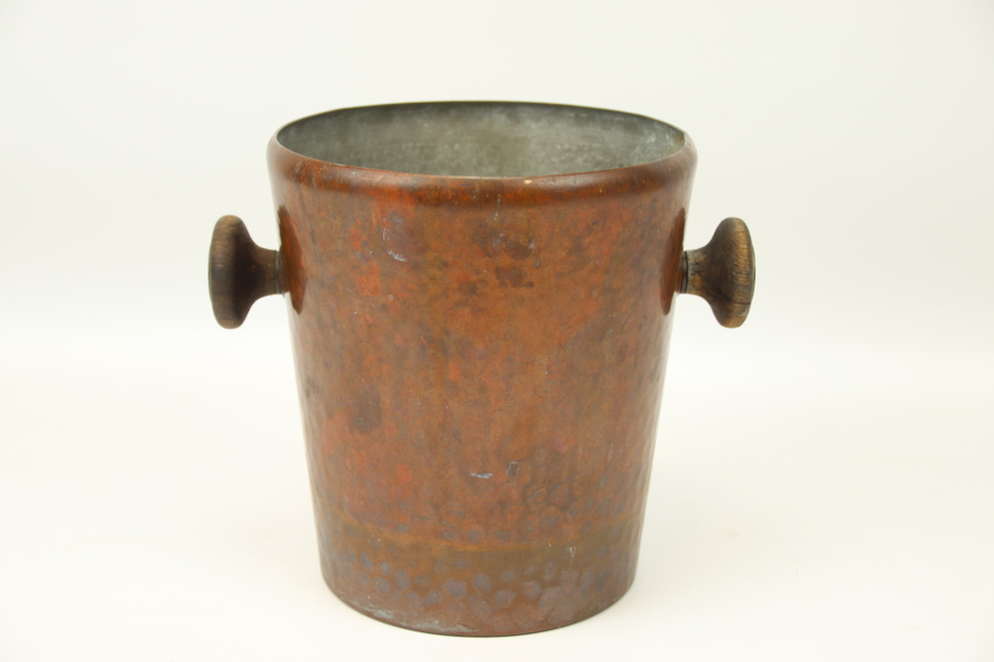Champagnekylare, hamrad koppar/trä.