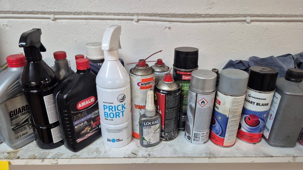 Kem + oljor m.m. på hyllanAnmärkning: Öppnade flaskor