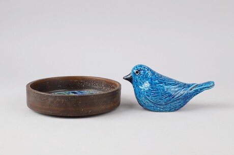Bilder Skål + fågel Aldo Bitossi H= 9,5 och mindre